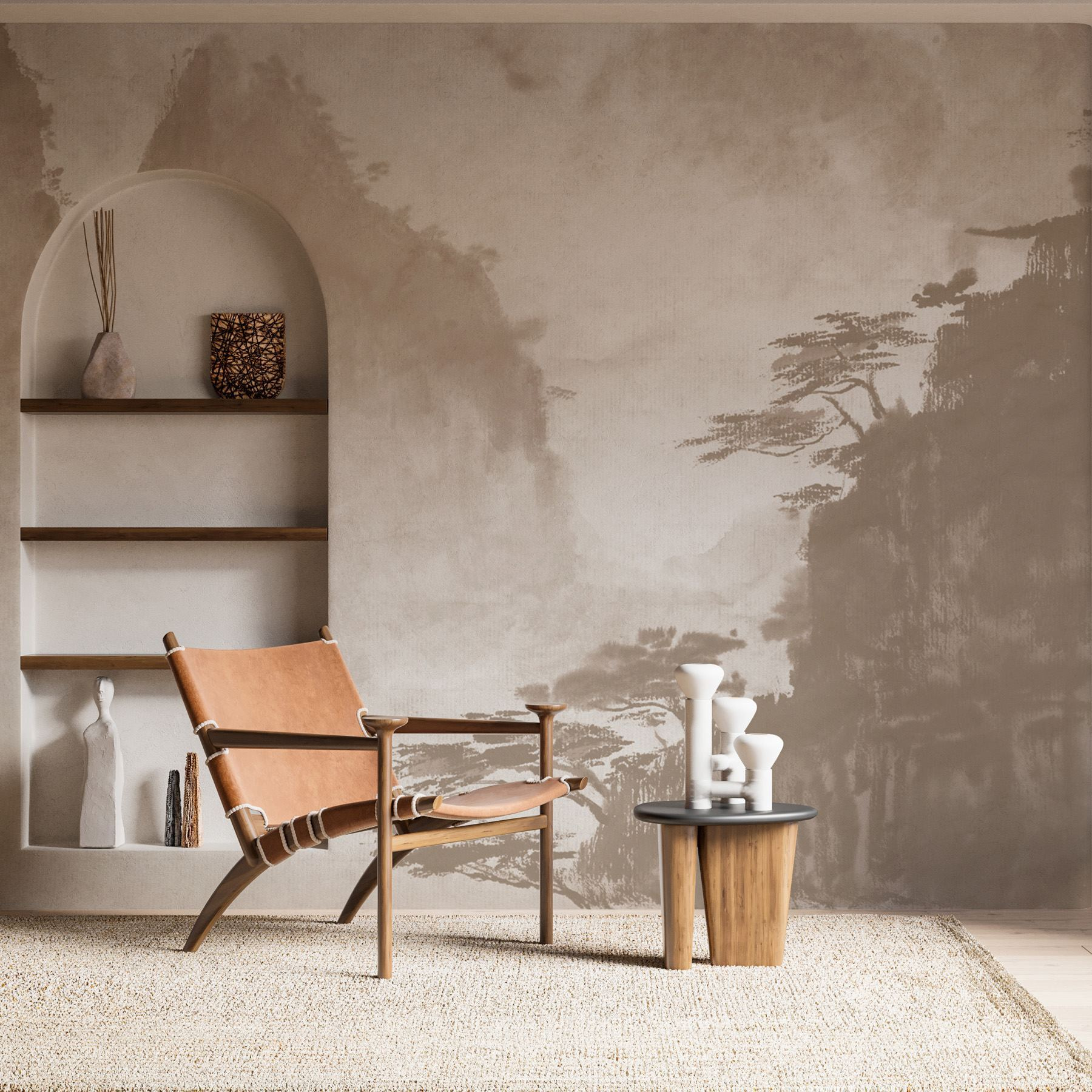 Wprowadź odrobinę spokoju do swojej przestrzeni dzięki tej hipnotyzującej fototapecie ściennej, która tańczy między elegancją drzew i majestatem gór. To jak owinięcie ścian delikatnym uściskiem samej natury. Wyobraź sobie popijanie herbaty, wpatrując się w te miękkie akwarele, podczas gdy twój umysł dryfuje do spokojnych wędrówek i szepczących wiatrów. Idealny do przytulnego salonu lub uspokajającej sypialni, dodaje głębi i odrobiny spokoju. Któż nie chciałby poczuć się jak we wnętrzu spokojnego krajobrazu, prawda? Przygotuj się na stworzenie własnej małej ucieczki!
