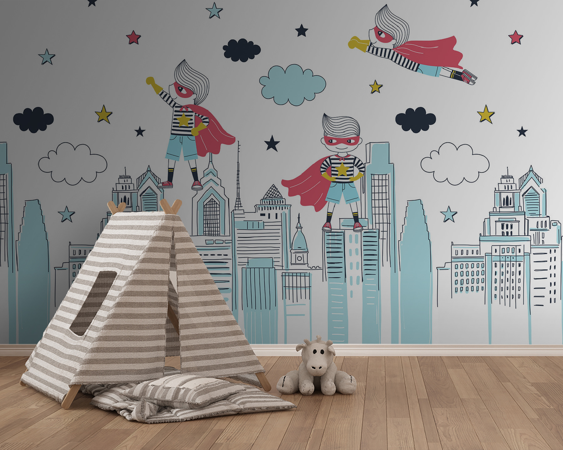 Przekształć pokój dziecka w tętniącą życiem przygodę dzięki tej fototapecie ściennej przedstawiającej zabawnego superbohatera. Na jasnym tle postać w pelerynie szybuje nad krajobrazem miasta, otoczona kapryśnymi chmurami i migoczącymi gwiazdami. To nie tylko dekoracja; pobudza wyobraźnię i marzenia o bohaterskich wyczynach! Idealna dla najmłodszych, ta fototapeta może zainspirować epickie opowieści na dobranoc i niezliczone godziny zabawy. Niezależnie od tego, czy jest to niespodzianka na urodziny, czy tylko prosta aktualizacja, ta fototapeta może sprawić, że pokój poczuje się jak zabawna ucieczka. Kto nie chciałby wskoczyć do świata przygód za każdym razem, gdy do niego wchodzi?