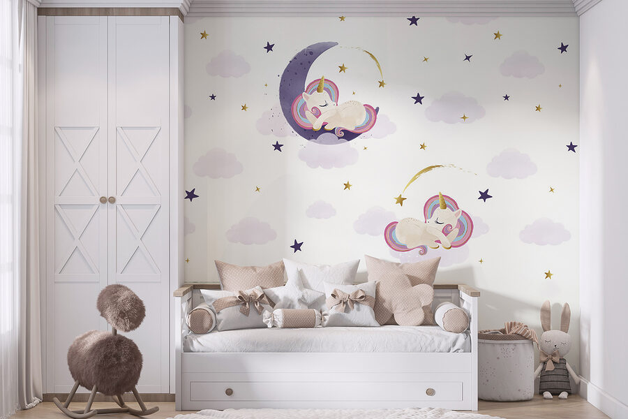 Cześć! Chcesz dodać odrobinę magii do pokoju swojego malucha? Ta fototapeta ścienna “Purple Star” jest właśnie dla niego. Wyobraź sobie senne niebo wypełnione miękkimi chmurami, migoczącymi gwiazdami i – możesz w to uwierzyć? – urocze jednorożce drzemiące na księżycu. Idealna dla niemowląt i dzieci, ta fototapeta to nie tylko dekoracja; to bilet do świata, w którym pora snu jest kojąca i pełna kaprysów. Wyobraź sobie swoje dziecko spoglądające w górę, być może marzące o przygodach ze swoimi nowymi przyjaciółmi jednorożcami. To jak wejście do bajki każdego dnia. Bonus: jest wystarczająco modny dla popularnego tłumu, ale wystarczająco słodki, aby nadać mu wyjątkowy, osobisty charakter. Dlaczego więc nie posypać ścian gwiezdnym pyłem? 🌟🚀🦄