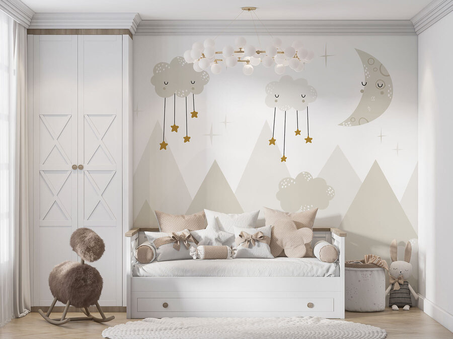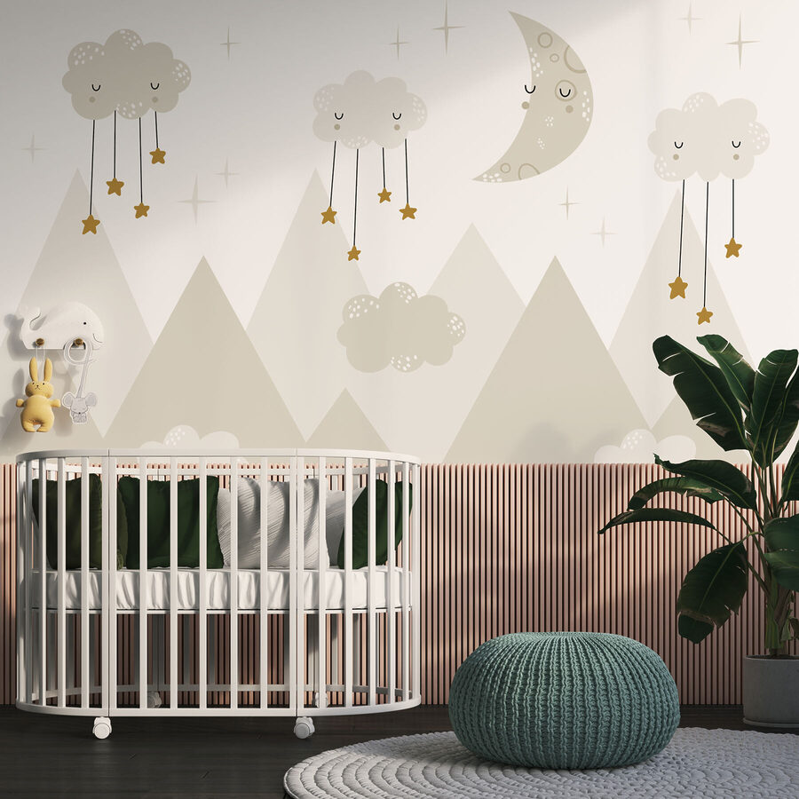 Wyobraź to sobie: senna fototapeta nocnego nieba ze śpiącym księżycem i przytulnymi chmurami zwisającymi z gwiazdami, delikatnie świecącymi nad górskimi szczytami. To jak wejście do kapryśnej bajki na dobranoc! Idealna do pokoju dziecięcego, ta fototapeta łączy w sobie wyobraźnię i wygodę – pobudzając kreatywność malucha i tworząc kojącą atmosferę. Pomyśl o tych wszystkich słodkich snach i chichotach na dobranoc. Poza tym, kto nie chciałby odpłynąć pod tak zachwycającą i uspokajającą sceną? To coś więcej niż tylko dekoracja – to mała przygoda na ścianie.