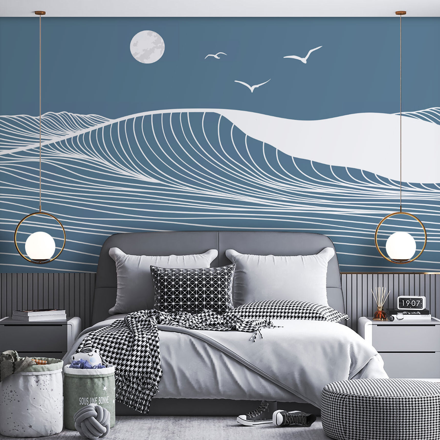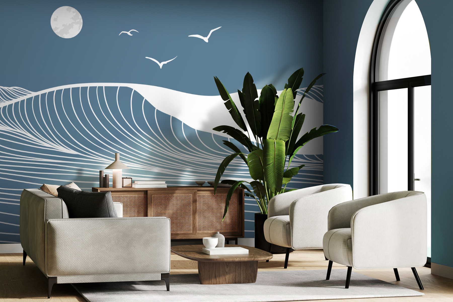 Zobacz ten oszałamiający mural “Białe linie na niebieskim tle”. Wyobraź to sobie w swoim salonie lub biurze – to jak wpatrywanie się w senną niebieską otchłań. Te wirujące białe linie? Przypominają delikatne fale, prawda? Ma spokojny klimat, prawie jak na spokojnej plaży o zachodzie słońca. Idealny do przestrzeni, w których chcesz dodać odrobinę spokoju i kreatywności. Niezależnie od tego, czy chodzi o ożywienie nudnej ściany, czy stworzenie centralnego punktu, ta fototapeta jest dla ciebie. Zanurz się w spokoju za każdym razem, gdy na nią spojrzysz. To jak powiew świeżego oceanicznego powietrza, prawda? 🌀🌊