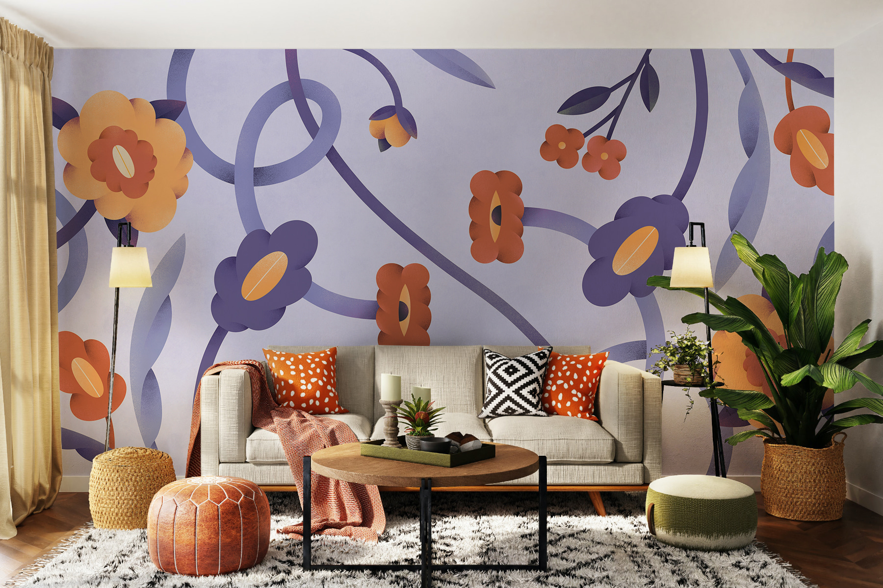 “Fototapety ścienne Fioletowe i pomarańczowe kwiaty i winorośle” są jak wejście do wesołego, marzycielskiego ogrodu. Te splecione pnącza i kwiaty w odważnym fiolecie i słonecznym pomarańczu po prostu tryskają energią. Wyobraź sobie, że budzisz się w tej tętniącej życiem scenerii – natychmiastowa poprawa nastroju! To tak, jakby mieć odrobinę lata na ścianie, niezależnie od pory roku.