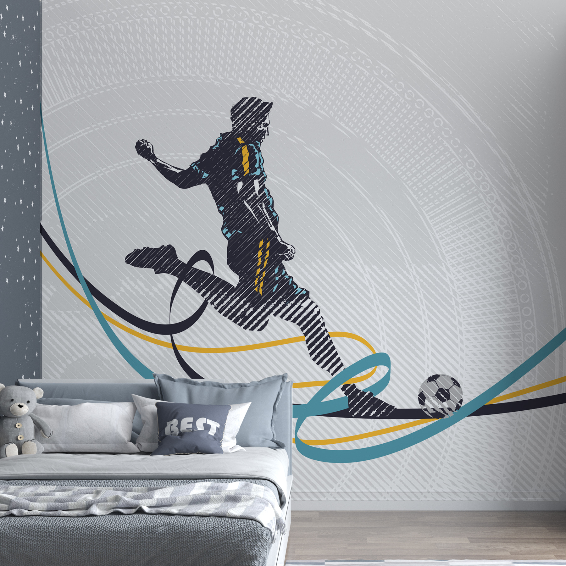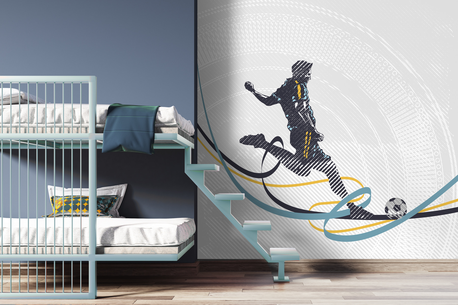 Mieszanka abstrakcyjnych linii i żywych kolorów nadaje mu chłodny, nowoczesny klimat, który wciąż jest ciepły i zachęcający. To jak uchwycenie idealnego sportowego momentu na zawsze. I hej, nie musisz się martwić o zdobywanie punktów w swojej grze dekoratorskiej – ta fototapeta z pewnością zapewni ci prowadzenie! Plamy koloru sprawiają, że wszystko jest pop. Idealna dla każdego fana piłki nożnej lub kogoś, kto po prostu uwielbia dobre ujęcia akcji.