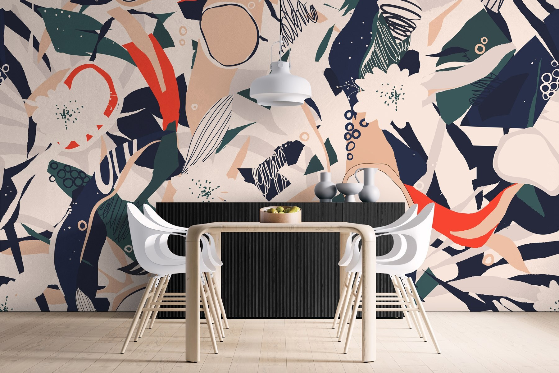 Przekształć każde pomieszczenie w tętniącą życiem oazę dzięki tej oszałamiającej fototapecie ściennej z kolorowym wzorem kwiatów i abstrakcyjnych kształtów. Wyobraź sobie, że wchodzisz do swojego pomieszczenia i witają cię wybuchy pomarańczy i kojącej zieleni. To jak przeniesienie żywego ogrodu do wnętrza bez uciążliwych pyłków! Idealna do przytulnego kącika lub nawet tętniącej życiem jadalni, ta fototapeta zachęca do uśmiechu i odrobiny zachwytu. Znajomi będą pytać, czy posiadasz sekretny ogród botaniczny. Dlaczego nie pozwolić ścianom mówić? Zabawny akcent, prawda?