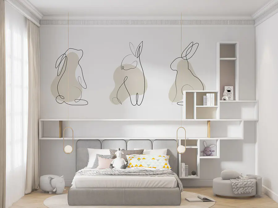 Pokochasz tę fototapetę! Nazywa się “Line drawing of a rabbit” i jest jak idealny dotyk kaprysu i minimalizmu w jednym. Wyobraź sobie, że patrzysz na te urocze małe króliczki, popijając poranną kawę. Ma ten prosty, liniowy klimat, który w jakiś sposób sprawia, że wszystko wydaje się lżejsze i bardziej pogodne.
