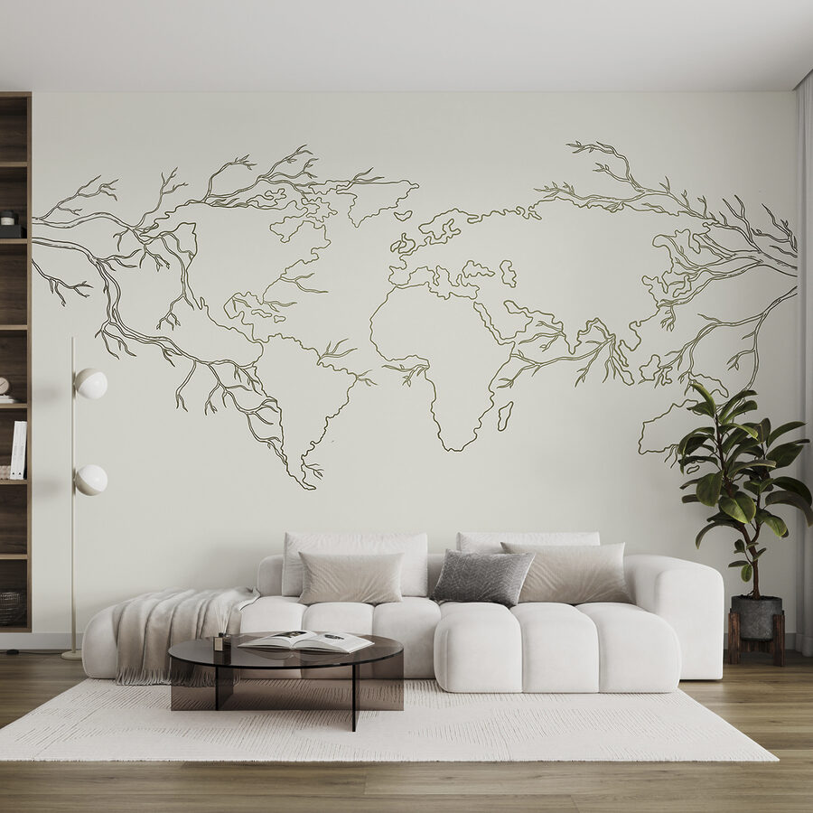 “Fototapeta ścienna Mapa świata” nie jest przeciętną tapetą. Wyobraź sobie, że nadajesz swojemu pokojowi odrobinę wędrówki dzięki temu wyjątkowemu projektowi z delikatnymi gałęziami tworzącymi kontynenty. Idealna do pokoju dziecięcego lub własnego specjalnego zakątka, to jak mała przygoda na ścianie – bez jet lagu.