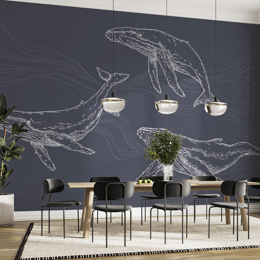 Wyobraź sobie, że wchodzisz do pokoju i jesteś witany przez majestatyczną grupę wielorybów, z gracją płynących po ścianie. Dokładnie taki klimat wprowadza ta fototapeta – uspokajający, a jednocześnie nieco ryzykowny. Idealna do każdej przestrzeni, która potrzebuje odrobiny magii oceanu. Widzisz, wieloryby nie tylko pływają, one szybują. Ta fototapeta oddaje tę elegancję, ożywiając ściany. Idealna do pokoju o tematyce plażowej lub po prostu do dodania odrobiny morza tam, gdzie najmniej się tego spodziewasz. Do tego te delikatne linie i fale… czysta artystyczna rozkosz! Zanurz się i pozwól tym wspaniałym stworzeniom przekształcić Twoją przestrzeń w podwodną przystań.