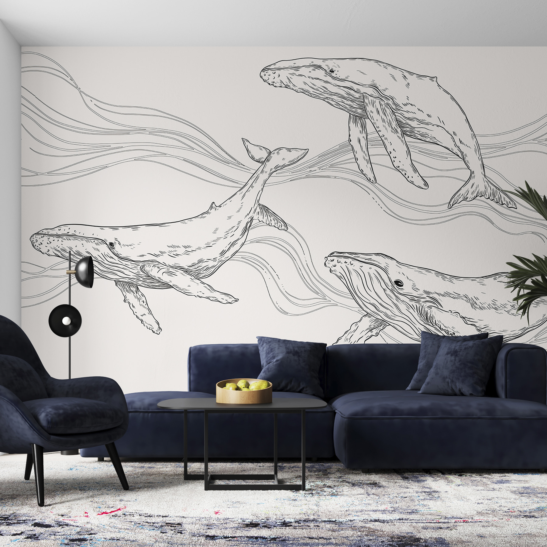 Wyobraź to sobie: trio majestatycznych wielorybów szybujących w głębinach, właśnie w twoim salonie. Ta fototapeta ścienna, kapryśnie zatytułowana “Grupa wielorybów pływających w wodzie”, jest jak przeniesienie spokoju oceanu wprost do twojej przestrzeni. Jest częścią kategorii Fototapety ze zwierzętami, Designerskie tapety ścienne, Popularne fototapety ścienne i Fototapety z morzem – w zasadzie ma wszystkie atuty.