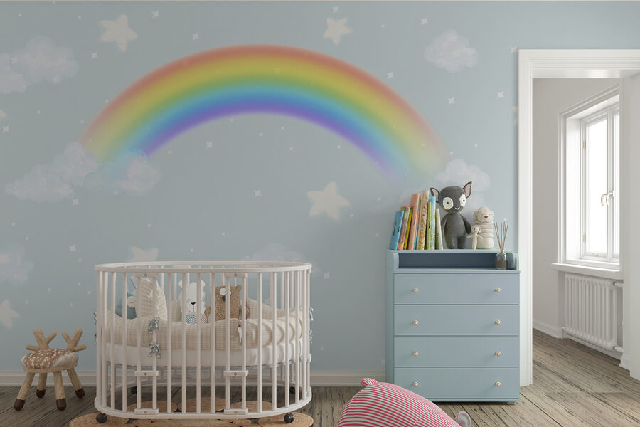 Ta fototapeta nie tylko dobrze wygląda – jest magiczna. Wyobraź sobie relaks w deszczowy dzień z gorącą czekoladą w ręku, podczas gdy ta fototapeta przynosi powiew świeżego powietrza i odrobinę koloru. Możesz zgubić się w spokojnym niebieskim tle lub wymyślać historie o gwiazdach i chmurach ze swoimi dziećmi. Jest przyjazna, zachęcająca i natychmiast sprawia, że pokój wydaje się większy i jaśniejszy.