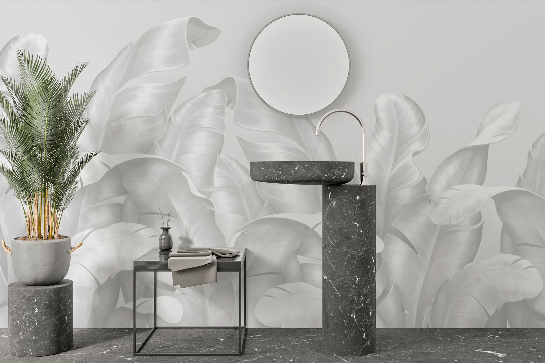 Przekształć zwykłą ścianę w oszałamiające arcydzieło dzięki tej fototapecie z elegancko stylizowanymi liśćmi. To jak posiadanie dżungli w swoim przytulnym wnętrzu bez konewki i uciążliwych owadów. Delikatne liście tworzą przewiewną atmosferę, sprawiając, że każde pomieszczenie wydaje się świeże i zachęcające. Wyobraź sobie, że popijasz kawę, wygrzewając się w miękkich teksturach tego wzoru lub wyobraź sobie przyjaciół zajmujących miejsce, aby podziwiać twój wspaniały gust. Delikatny wygląd tej fototapety pasuje do każdego stylu wystroju, bez wysiłku wtapiając się w otoczenie, a jednocześnie wyróżniając się. Mówimy o wygranej-wygranej!