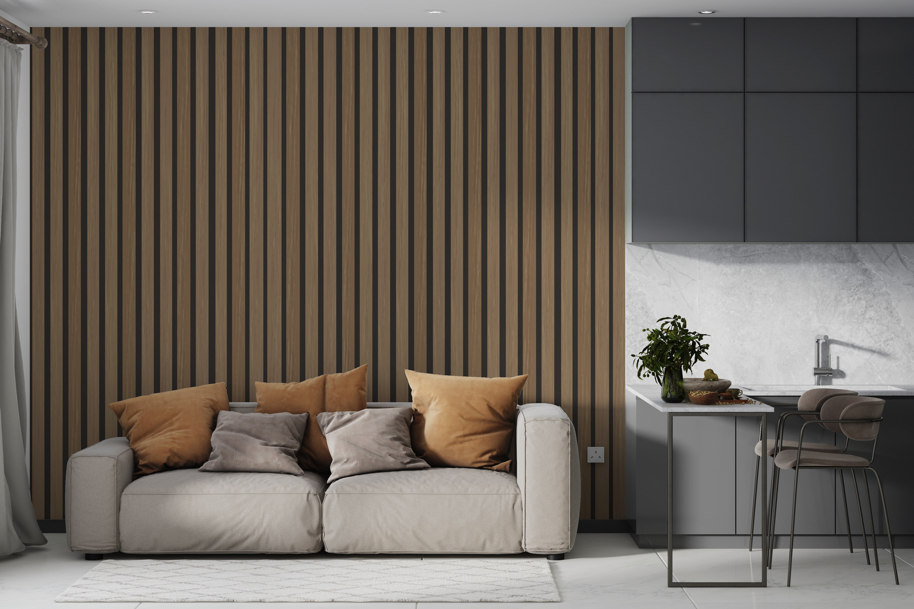 Czy kiedykolwiek chciałeś, aby twój pokój mógł stworzyć przytulny, a jednocześnie szykowny klimat nowoczesnej kabiny? Fototapeta ścienna “Wzór drewnianych listew z cieniami” jest jak tajna broń dla twoich ścian. Pomyśl o eleganckich drewnianych panelach skąpanych w delikatnych cieniach – to wszystko zen-drewniana prostota, której potrzebujesz bez kłopotów z prawdziwym drewnem.