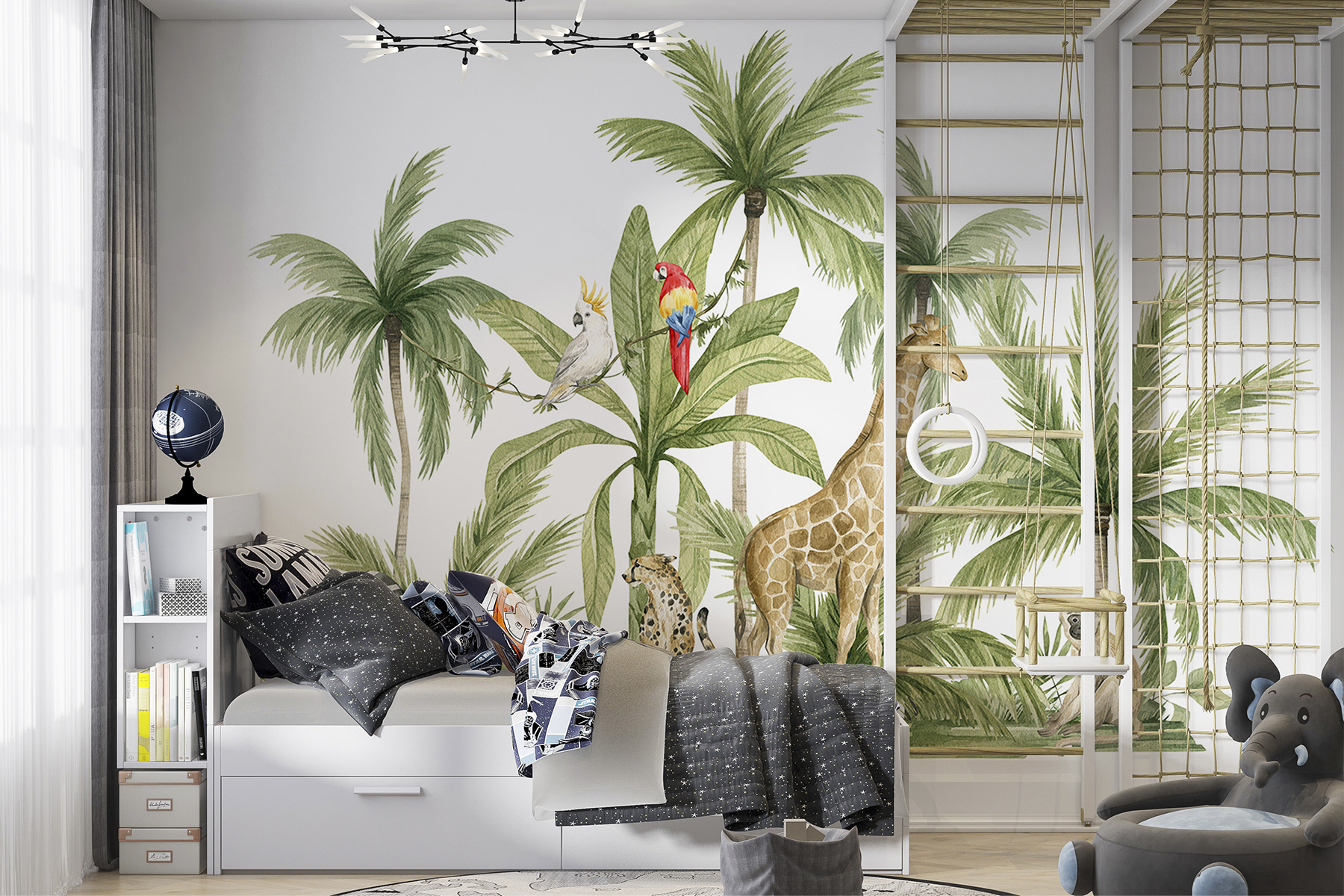 Dzieci będą go uwielbiać – wymyślając historie o zaprzyjaźnieniu się ze zwierzętami z dżungli. Świetnie nadaje się również do tworzenia zabawnej, kapryśnej atmosfery bez przesady. Nawet dorośli mogą uznać ją za relaksującą, niczym mini-wycieczkę do tropikalnego raju we własnym domu. Miękkie, ziemiste odcienie w połączeniu z żywymi detalami zapewniają właściwą równowagę między spokojem a żywiołowością.