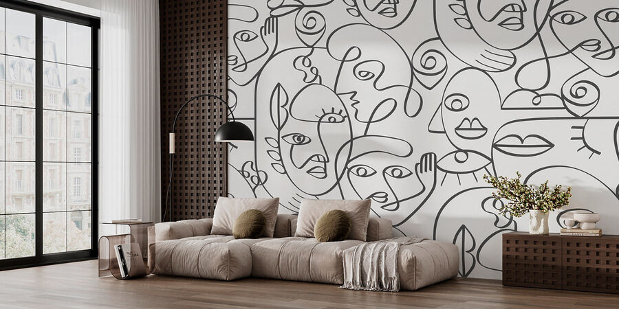 Przekształć każde pomieszczenie w miejsce do rozmów dzięki tej dziwacznej fototapecie ściennej z zabawną mieszanką czarno-białych twarzy. To jak wejście do galerii sztuki abstrakcyjnej w swoim domu. Każdy wyraz twarzy wydaje się opowiadać własną historię, dając energetyczny nastrój, który trudno zignorować. Wyobraź sobie, że goście zatrzymują się, aby podziwiać ten wyjątkowy projekt, podczas gdy ty popijasz kawę, chwaląc się swoimi stylowymi wyborami dekoracyjnymi. Idealny do salonu, a nawet przytulnego kącika, wnosi zabawny, artystyczny styl, który wydaje się świeży i zachęcający. Niech te twarze wywołają ciekawe rozmowy!
