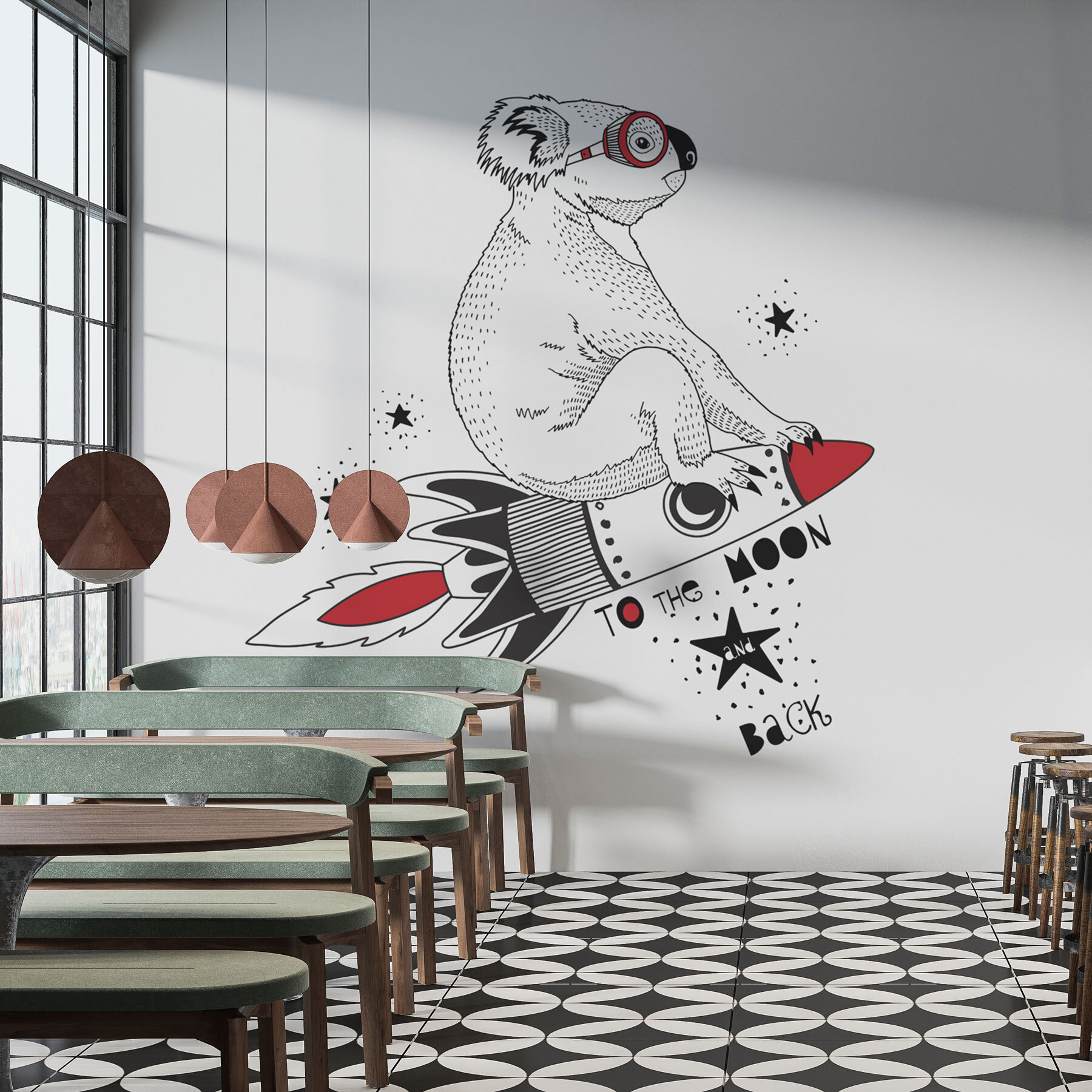 Sprawdź tę uroczą fototapetę zatytułowaną “Koala na rakiecie”. Idealna do dodania odrobiny kapryśnego uroku do każdego pomieszczenia, ta fototapeta pasuje do kategorii takich jak Zwierzęta, Dzieci, Galaktyka, Niemowlęta – masz pomysł. Wyobraź sobie koalę w okularach lotnika, jadącego na eleganckiej rakiecie zmierzającej na księżyc! Przestrzeń Twojego dziecka nagle staje się małym kawałkiem zabawnej galaktyki. Zupełnie jak w bajkach na dobranoc, prawda? Jest uroczo dziwaczny i z pewnością rozświetli te małe oczka i pobudzi gigantyczną wyobraźnię. Wyobraź sobie “ochy” i “achy” od każdego, kto to zobaczy! Ponadto jest to fantastyczny sposób na pielęgnowanie marzeń o eksploracji kosmosu i przygodach. Dzięki tej fototapecie dosłownie dekorujesz marzenia. Na księżyc i z powrotem, naprawdę!