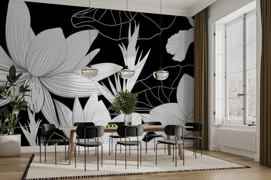 Wyobraź sobie taką sytuację: siedzisz w swoim pokoju, ale jeszcze nie czujesz się w nim jak “ty”. Może potrzebuje ostatecznego akcentu, aby poczuć się wyjątkowo. Wejdź do eleganckiej czarno-białej fototapety w kwiaty – oszałamiającego pokrycia ściennego, które doda wyrafinowania i stylu każdej przestrzeni. Spójrz tylko na te kwiaty! To nie są zwykłe bukieciki; mają ten artystyczny talent, który mówi: “Ten pokój? To coś innego”.