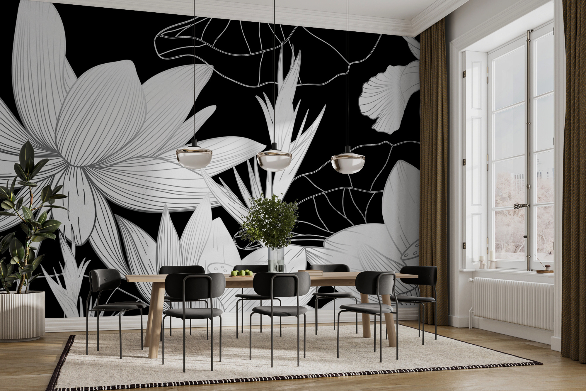 Wyobraź sobie taką sytuację: siedzisz w swoim pokoju, ale jeszcze nie czujesz się w nim jak “ty”. Może potrzebuje ostatecznego akcentu, aby poczuć się wyjątkowo. Wejdź do eleganckiej czarno-białej fototapety w kwiaty – oszałamiającego pokrycia ściennego, które doda wyrafinowania i stylu każdej przestrzeni. Spójrz tylko na te kwiaty! To nie są zwykłe bukieciki; mają ten artystyczny talent, który mówi: “Ten pokój? To coś innego”.