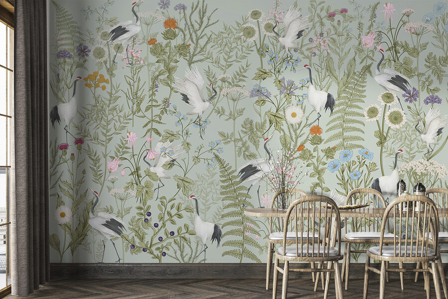 Niezależnie od tego, czy jesteś miłośnikiem przyrody, czy po prostu kimś, kto lubi odrobinę kaprysu, ta fototapeta zapewni ci ochronę. Mieszanka zieleni i kolorowych kwiatów tworzy spokojny leśny klimat – idealny do stworzenia spokojnego kącika, w którym można zrelaksować się przy dobrej książce lub filiżance herbaty. Ponadto, jest coś szykownego w białych ptakach na tle zieleni. To tak, jakby mieć kawałek zaczarowanego lasu w swoim domu.