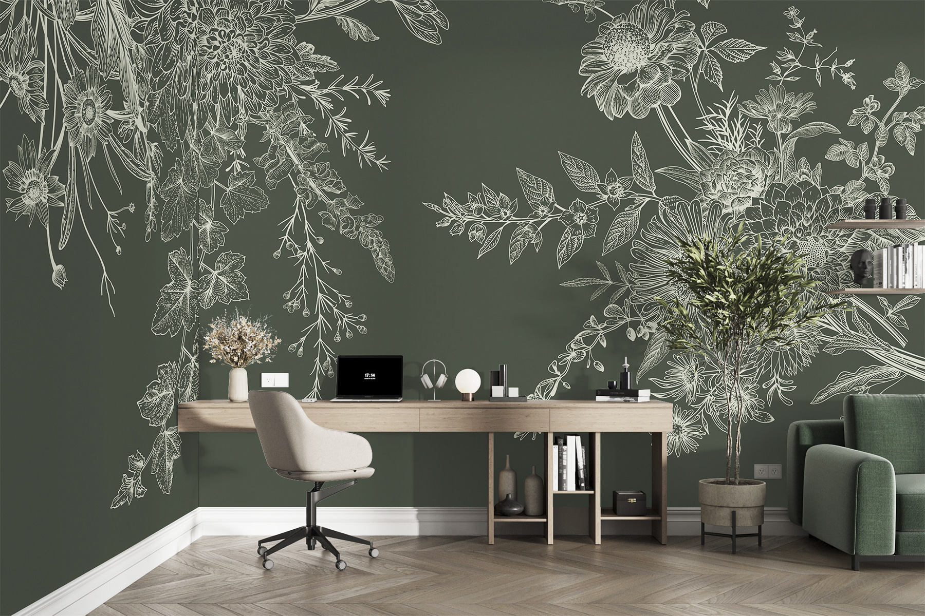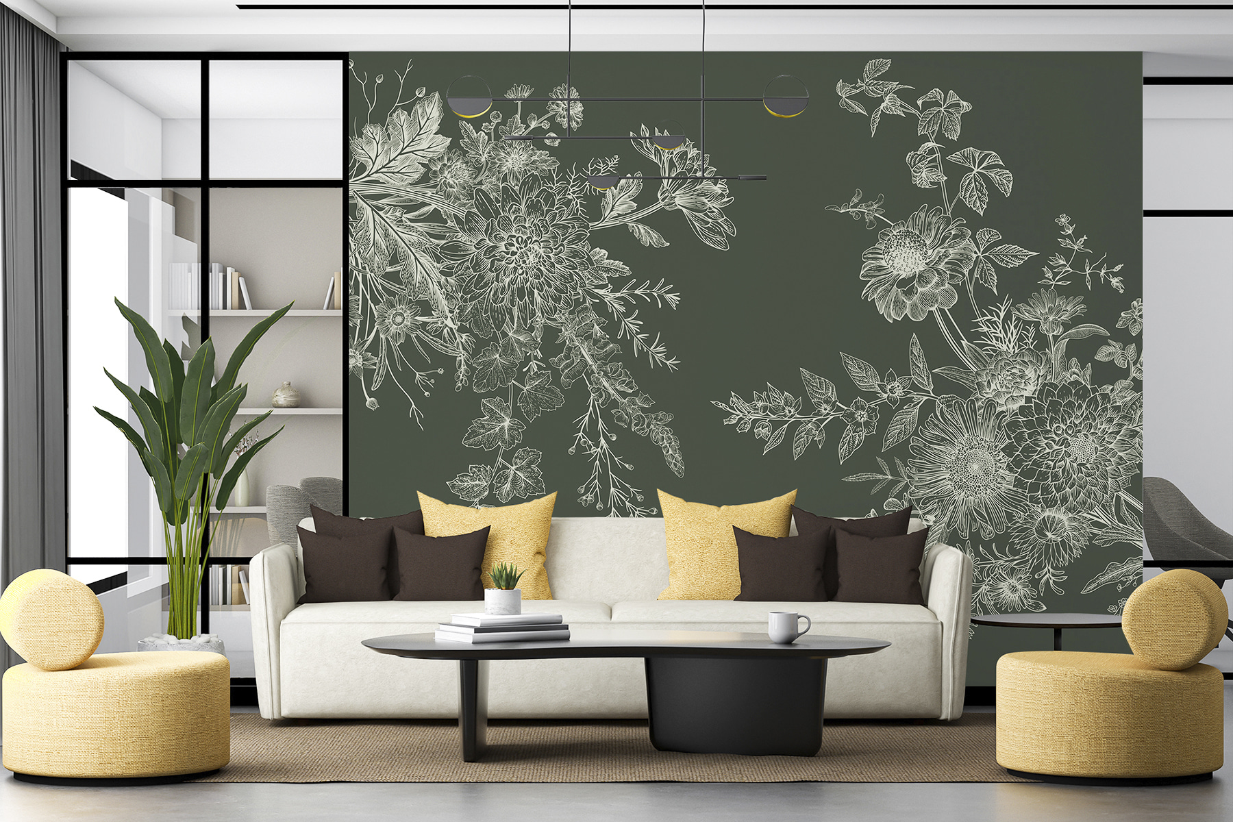 Przekształć zwykłą ścianę w botaniczne arcydzieło dzięki tej eleganckiej kwiatowej fototapecie. Wyobraź sobie misterne szkice kwiatów tańczących na głębokim, bogatym tle – to jak przeniesienie ogrodu do wnętrza bez konieczności podlewania czegokolwiek! Wyobraź sobie, że budzisz się w pokoju, w którym czujesz się jak w kreatywnej oazie, która jednocześnie inspiruje i uspokaja. To idealne rozwiązanie do przytulnego kącika do czytania lub stylowego biura. Znajomi będą zachwyceni Twoim wyjątkowym gustem. Poza tym, kto oprze się tym kapryśnym detalom? To nie tylko dekoracja; to doświadczenie, które szepcze tajemnice natury za każdym razem, gdy na nią spojrzysz.