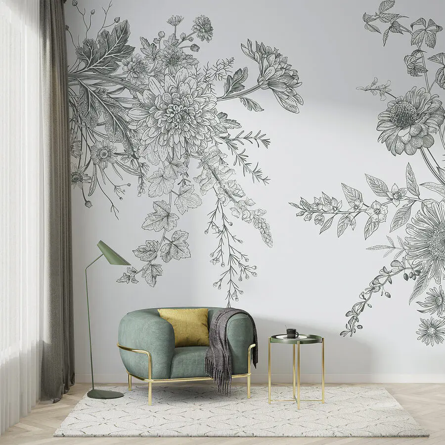 Ta fototapeta to nie tylko ładna twarz – dodaje ona charakteru i uspokajającej atmosfery do twojej przestrzeni. Wyobraź sobie zwinięcie się z książką pod kocem narysowanych liści, z których każdy kwiat opowiada historię. To tak, jakby wnieść do wnętrza odrobinę tego, co na zewnątrz. Wystarczająco wszechstronny, aby odświeżyć salon lub stworzyć spokojne miejsce do odpoczynku w sypialni.