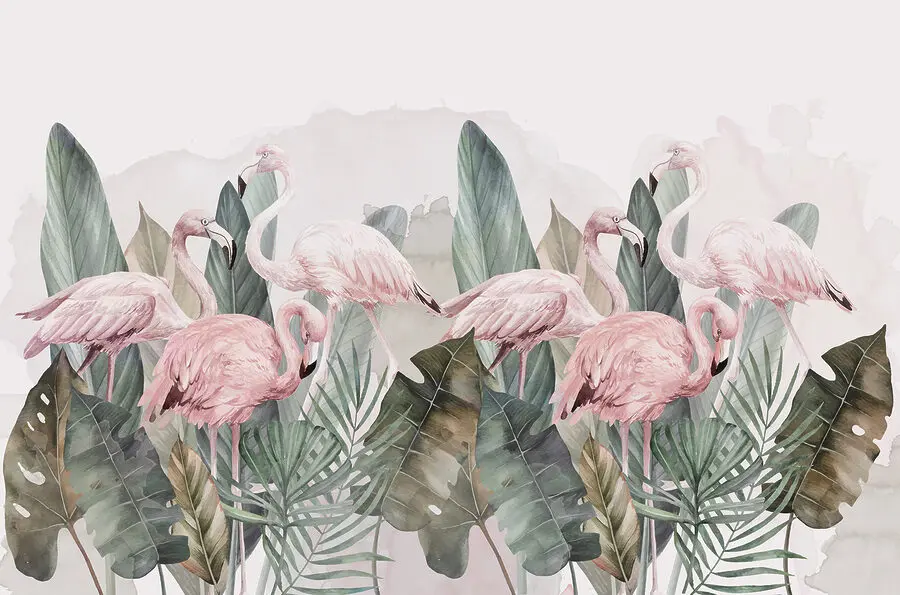 Delikatne róże i zielenie tworzą tak uspokajającą atmosferę. To jak przeniesienie odrobiny dżungli do domu, bez robaków! Niezależnie od tego, czy chcesz ożywić swoją sypialnię, dodać intrygę do biura, czy stworzyć zabawną przestrzeń dla dzieci, ta fototapeta wie, jak zrobić wrażenie. Poza tym, kto nie kocha flamingów? Są dziwaczne, zabawne i po prostu wspaniałe.