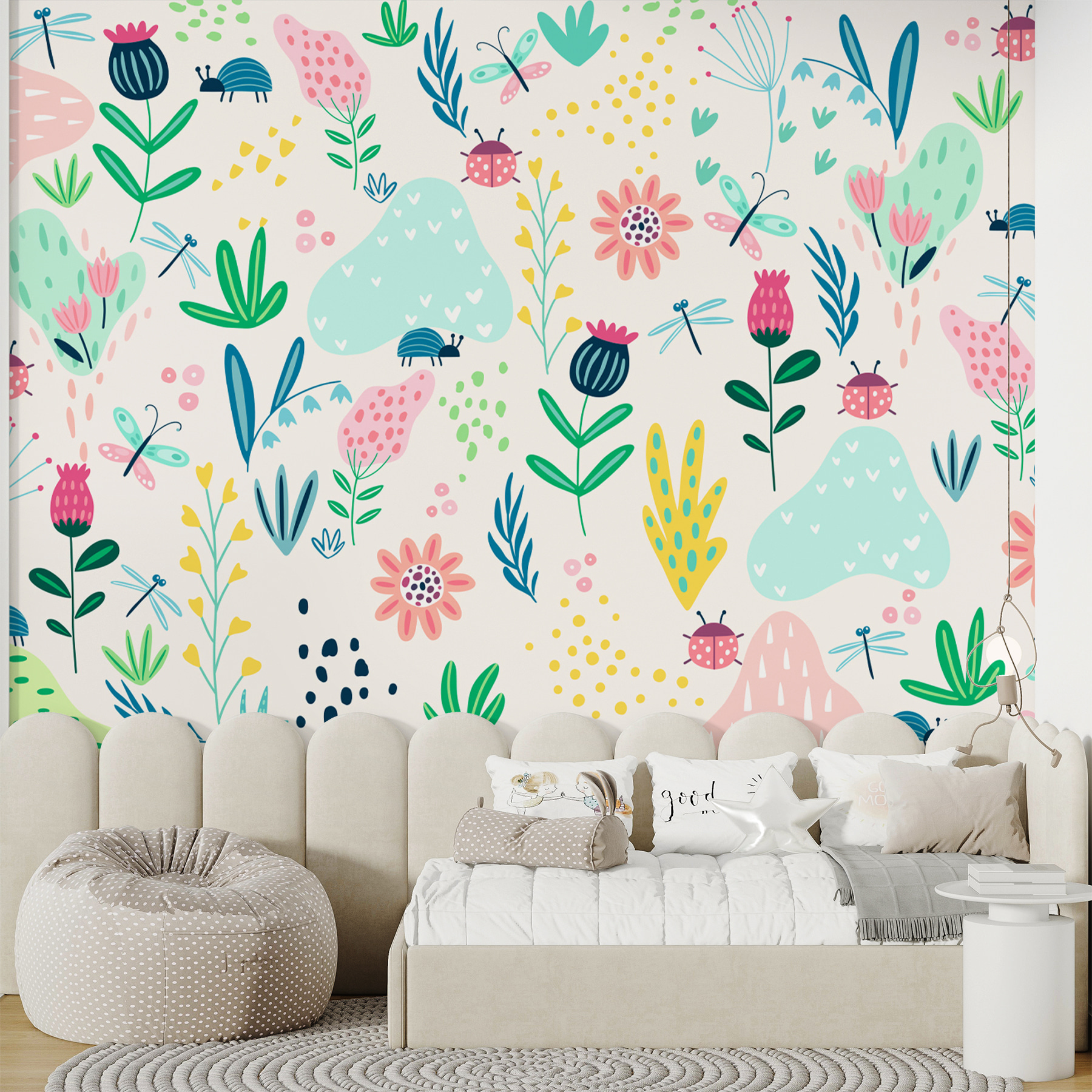 Czujesz, że twoim ścianom przydałoby się trochę magii? Ta fototapeta ścienna “Cartoon of a Ladybug” może być twoim nowym najlepszym przyjacielem. Idealna do ożywienia pokoju dziecięcego lub dodania kapryśnego akcentu do własnej przestrzeni, jest jak mini przygoda w dżungli za każdym razem, gdy wchodzisz. Urocze biedronki, przyjazne ważki i kolorowe kwiaty tańczą razem w zabawnej scenerii.