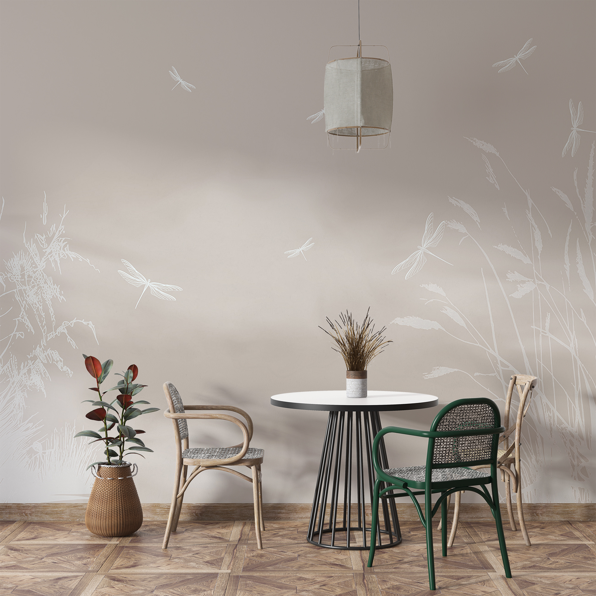 Potrzebujesz czegoś marzycielskiego na ścianę? Sprawdź tę fototapetę – ma te delikatne białe ważki latające wokół na miękkim, ziemistym tle. To jak łagodne popołudnie na polu, z ważkami tańczącymi na lekkim wietrze. Wyobraź sobie, że siedzisz w swoim ulubionym fotelu, z filiżanką herbaty w dłoni, całkowicie zen. Ma ten uspokajający klimat, który sprawia, że chcesz wziąć głęboki oddech i zrelaksować się. Idealny do dodania odrobiny natury i spokoju do swojej przestrzeni! Zaufaj mi, będziesz chciał się w niej zatracić za każdym razem, gdy będziesz obok niej przechodzić.