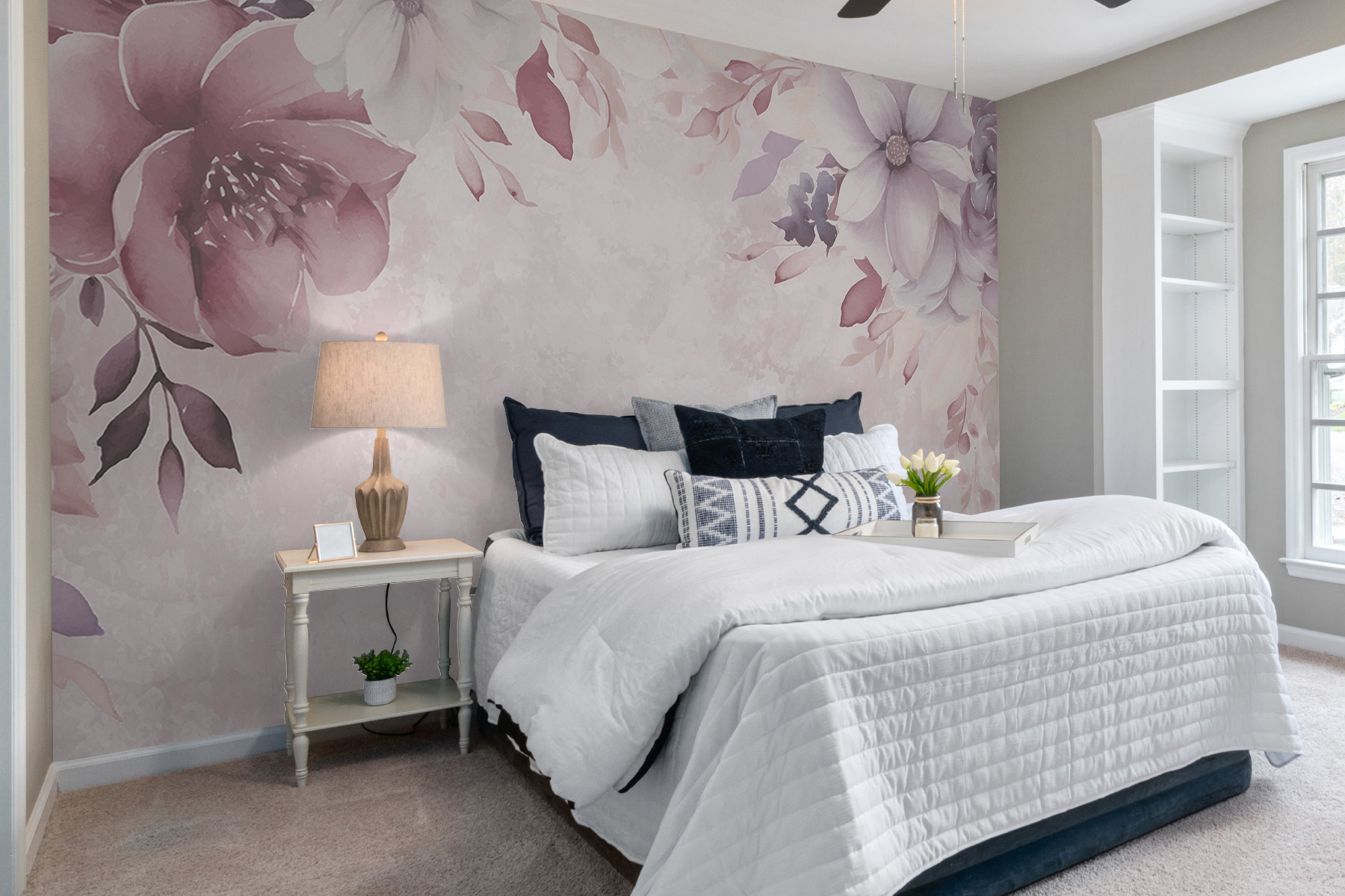 Sprawdź tę oszałamiającą fototapetę – “Pastelowa kwiatowa elegancja na wystawie”. Idealna, jeśli kochasz odrobinę kaprysu w swoim wystroju. Wyobraź sobie, że wchodzisz do pokoju wypełnionego rozmarzonymi akwarelowymi piwoniami i miękkimi kwiatami w delikatnych różach i fioletach. To jak wejście do bajki, prawda?