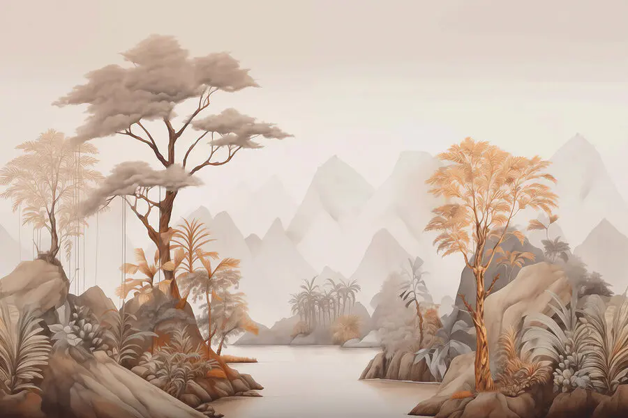 Przekształć dowolne pomieszczenie w spokojny azyl dzięki tej czarującej fototapecie ściennej przedstawiającej spokojną rzekę otoczoną majestatycznymi górami i bujnymi drzewami. Wyobraź sobie, że wchodzisz do swojej przestrzeni i natychmiast czujesz delikatny powiew dzikiej przyrody – nawet jeśli najbliższa dżungla znajduje się milion mil stąd. Odcienie ciepłych kolorów ziemi tańczą w całym projekcie, wywołując poczucie spokoju i połączenia z naturą. Wyobraź sobie przytulne wieczory spędzone w tym miejscu, być może z dobrą książką i filiżanką herbaty lub dzieląc się śmiechem z przyjaciółmi, podziwiając kojące tło. Idealna do uczynienia z każdej ściany centralnego punktu, ta fototapeta sprawi, że każdy poczuje się jak w ukrytej oazie.
