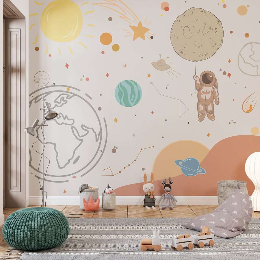 Wyobraź sobie spoglądanie na senny, kapryśny wszechświat bez wychodzenia z salonu. Ta fototapeta ścienna “Cartoon of a planet” jest idealna dla każdego, kto kocha galaktykę i ma słabość do uroczych astronautów. Projekt jest zabawny i pełen planet, gwiazd, a nawet wesołego małego podróżnika kosmicznego trzymającego balon przypominający księżyc. Idealny do urozmaicenia pokoju dziecięcego lub dodania odrobiny kosmicznego uroku do każdej przestrzeni. To nie tylko fototapeta – to cały klimat. Poczujesz się, jakbyś unosił się w łagodnej, kreskówkowej galaktyce.
