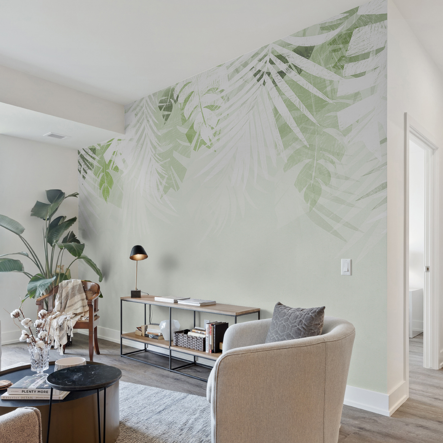 Wyobraź sobie, że budzisz się rano w takim otoczeniu – to prawie tak, jakbyś wkroczył do spokojnej dżungli, ale bez wilgoci (i owadów). Idealny do domowego biura, sypialni, a nawet przytulnego kącika do czytania dla każdego miłośnika przyrody. To trochę jak przeniesienie się na zewnątrz, ale z mniejszą ilością brudu i większym stylem. Ponadto, jeśli twoje ściany potrzebują trochę miłości, ta fototapeta jest właśnie tym, co ukryje te niedoskonałości i sprawi, że wszystko będzie wyglądać szykownie bez wysiłku.