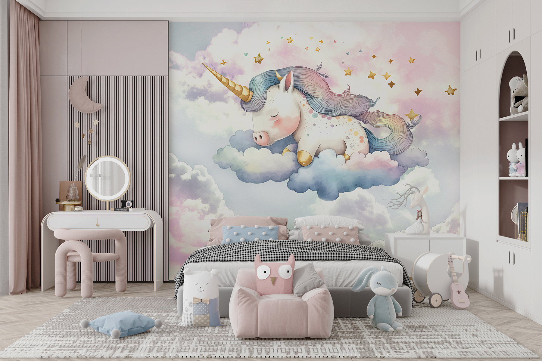 Zobacz tę marzycielską fototapetę ścienną “Jednorożec śpiący na chmurach”! Poważnie, to jak wejście w puszysty, magiczny sen za każdym razem, gdy wchodzisz do pokoju. Wyobraź sobie teraz swoje ulubione przytulne miejsce z super uroczym, drzemiącym jednorożcem na miękkich, puszystych chmurkach – co za klimat, prawda? Idealny do dodania odrobiny magii do pokoju dziecięcego lub nawet własnego kącika do czytania.