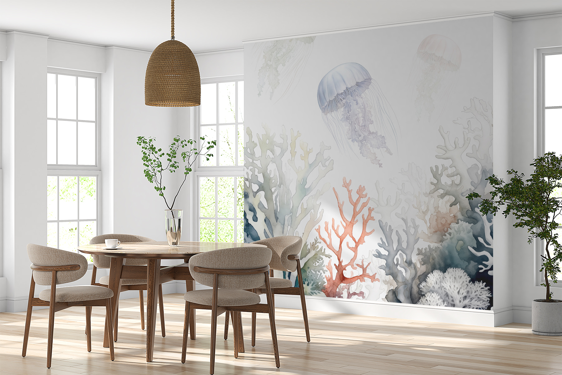 Wyobraź sobie pływanie w spokojnej podwodnej krainie czarów. Taki właśnie nastrój wprowadzi do twojej przestrzeni fototapeta “Meduza dryfująca po kolorowych koralowcach”. To jak szept oceanu na twoich ścianach! Miękkie, akwarelowe odcienie sprawiają, że czujesz się zrelaksowany – prawie tak, jakbyś słyszał delikatne kołysanie morza. Idealny dla każdego, kto kocha nadmorski urok, to prawdziwy początek rozmowy. Zanurz się w tej spokojnej scenerii i pozwól swoim zmartwieniom odpłynąć wraz z tymi wspaniałymi meduzami. Odrobina koloru i spokoju w Twoim domu!
