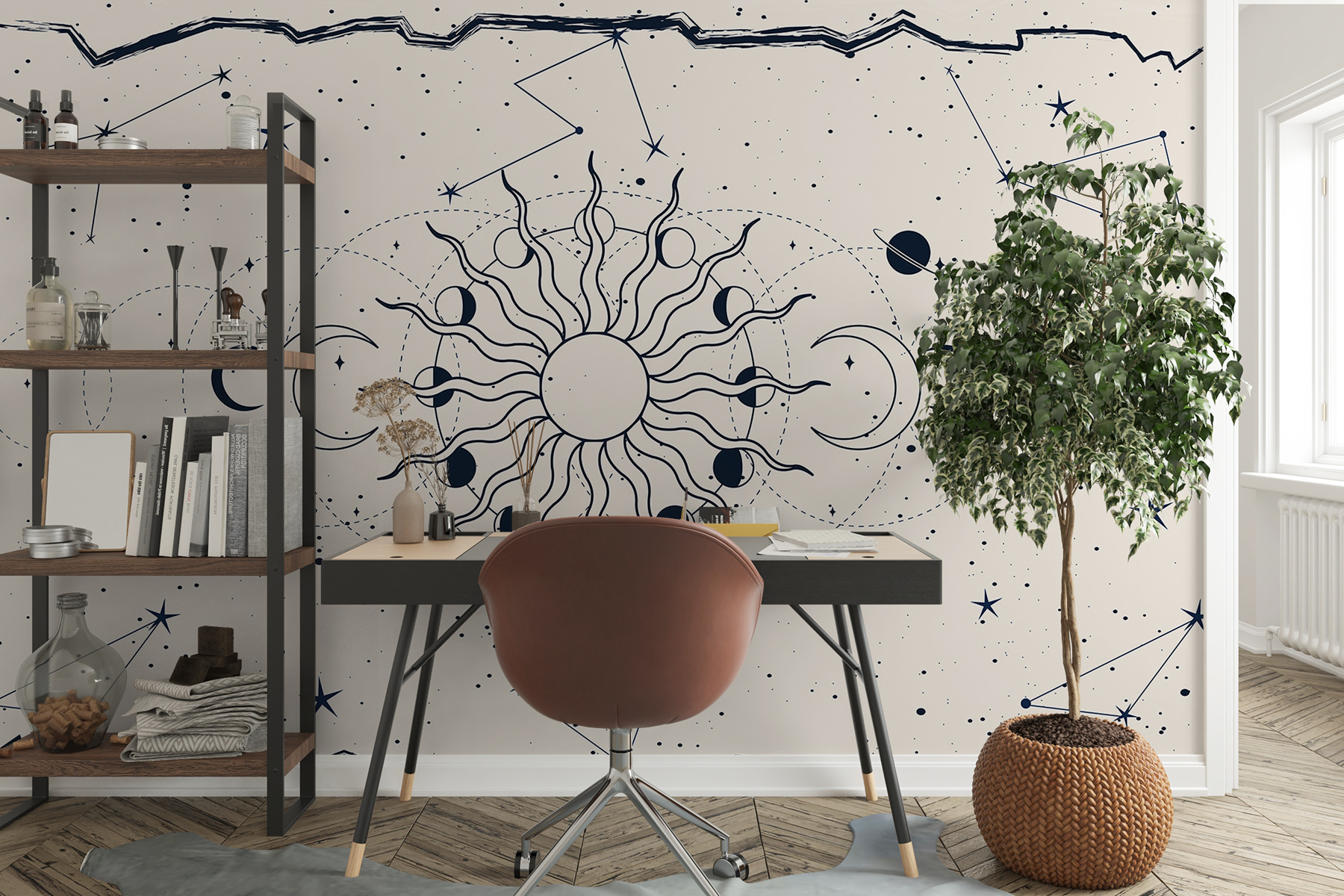 Przekształć swoją przestrzeń dzięki czarującej fototapecie ściennej “Rysunek Słońca i Księżyca”. Ten hipnotyzujący projekt łączy niebiański duet w zabawnym tańcu. Wyobraź sobie, że wchodzisz do pokoju, w którym słońce promieniuje ciepłem, a księżyc rzuca uspokajający blask. Idealny do przytulnej sypialni lub tętniącego życiem salonu, pobudza do rozmów i inspiruje do marzeń.