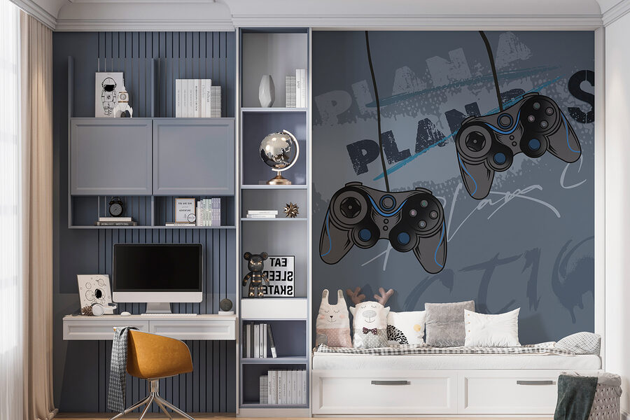Wyobraź sobie, że podnosisz wzrok znad ekranu i widzisz tę elegancką, szarą fototapetę z fajnymi kontrolerami gier wideo bezpośrednio na ścianie. To jak wejście do futurystycznej strefy gier! Idealna dla miłośników gier w każdym wieku – niezależnie od tego, czy jest to kryjówka nastolatka, nowy fajny pokój dziecka, czy elegancki akcent dla młodego dorosłego. Szare tło z niebieskimi akcentami na kontrolerach dodaje nowoczesnego, ostrego klimatu. To prawie tak, jakbyś słyszał intensywną muzykę z gry i czuł energię akcji za każdym razem, gdy na nią patrzysz. To coś więcej niż tylko dekoracja; to wyrazisty element, który wprowadza osobowość i zabawę do pokoju. I szczerze mówiąc, czy nie byłoby to świetne miejsce na rozmowę, gdy przyjdą znajomi? “O, to? Po prostu moja niesamowita fototapeta z grą”. Ponadto jest to natychmiastowy wzmacniacz nastroju. Przygotuj się na inspirację – niezależnie od tego, czy chodzi o wysokie wyniki, czy po prostu dobry nastrój!