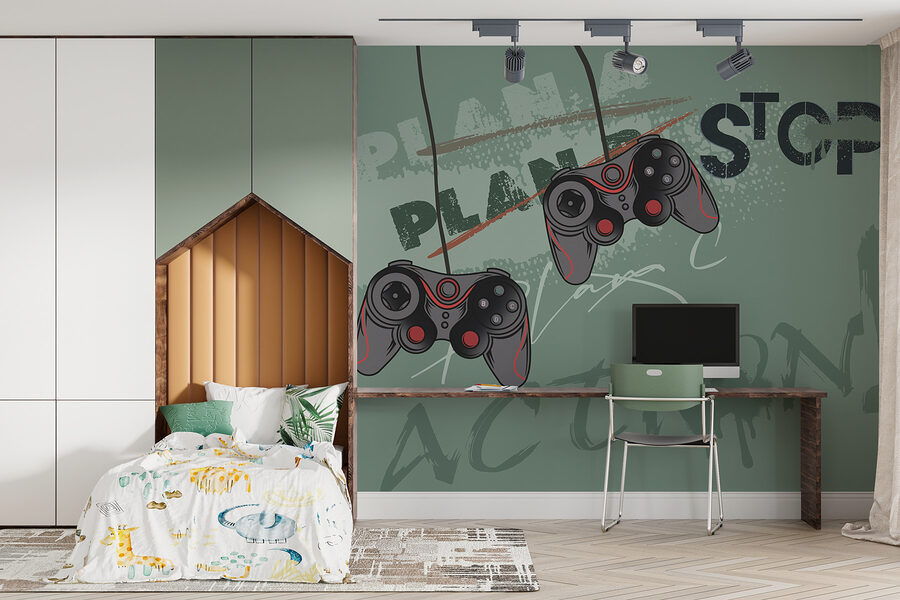Dodaj swojej przestrzeni energii do zabawy dzięki tej fototapecie ściennej “Kontroler gier wideo”. Idealna do każdego pokoju gracza, pokoju nastolatka lub dziwacznego zakątka domu. Odważne kontrolery wydają się wyskakiwać ze ściany, uchwycając tę niekończącą się ekscytację związaną z odpaleniem nowej gry. Wyobraź sobie, że Twoi znajomi wchodzą i natychmiast czują ten nostalgiczny pęd!