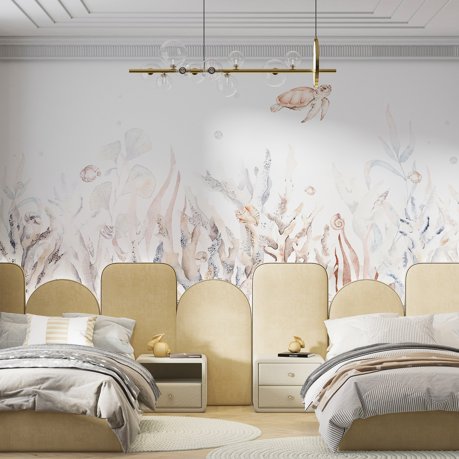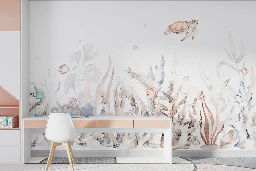Wyobraź sobie spokój morskiego życia w swoim salonie! Ta fototapeta ścienna “Życie morskie pływające wśród koralowców” jest jak podwodny raj na ścianie. Wirujące koralowce, figlarne ryby i wdzięczne żółwie morskie wprowadzają świeży, spokojny nastrój – idealny do każdego pomieszczenia pragnącego odrobiny spokojnej elegancji. Wyobraź sobie swoje domowe biuro lub pokój dziecięcy z takim spokojnym akcentem – to jak codzienne mini-wakacje bez wychodzenia z domu. Uroczy mały żółw płynący z gracją, z pewnością wywoła uśmiech na twojej twarzy za każdym razem, gdy go zobaczysz. Akwarelowy styl nadaje mu delikatny, artystyczny charakter – prawie jak senny obraz. Jeśli wystrój o tematyce rybnej lub nadmorski spokój to twoja pasja, ta fototapeta pokryje twoje ściany. Zanurz się i dodaj odrobinę oceanicznego piękna do swojej przestrzeni!