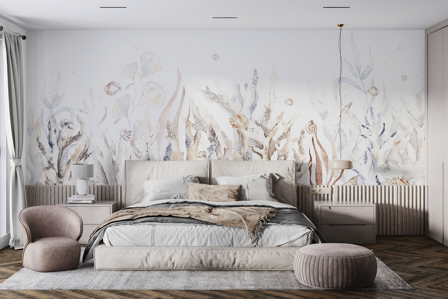 Wyobraź sobie, że wchodzisz do swojego pokoju i czujesz się, jakbyś właśnie wkroczył do czarującego podwodnego raju. Fototapeta ścienna “Podwodny ogród z muszlami i rybami” jest jak kawałek oceanu w twoim domu. Dzięki spokojnym kolorom i delikatnym detalom ma ona uspokajającą atmosferę, która jest idealna do relaksu po długim dniu. Można niemal poczuć chłodną morską bryzę i usłyszeć delikatne fale, prawda?