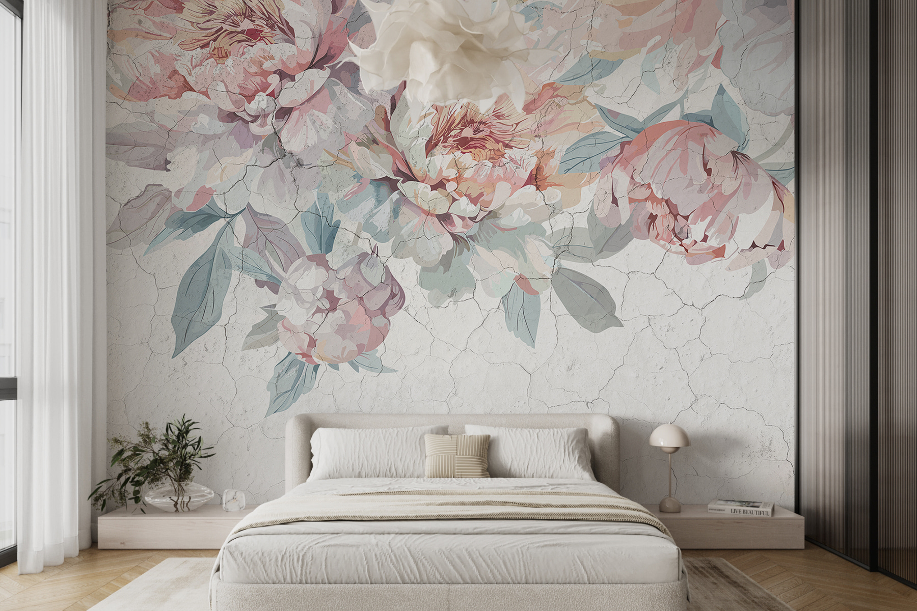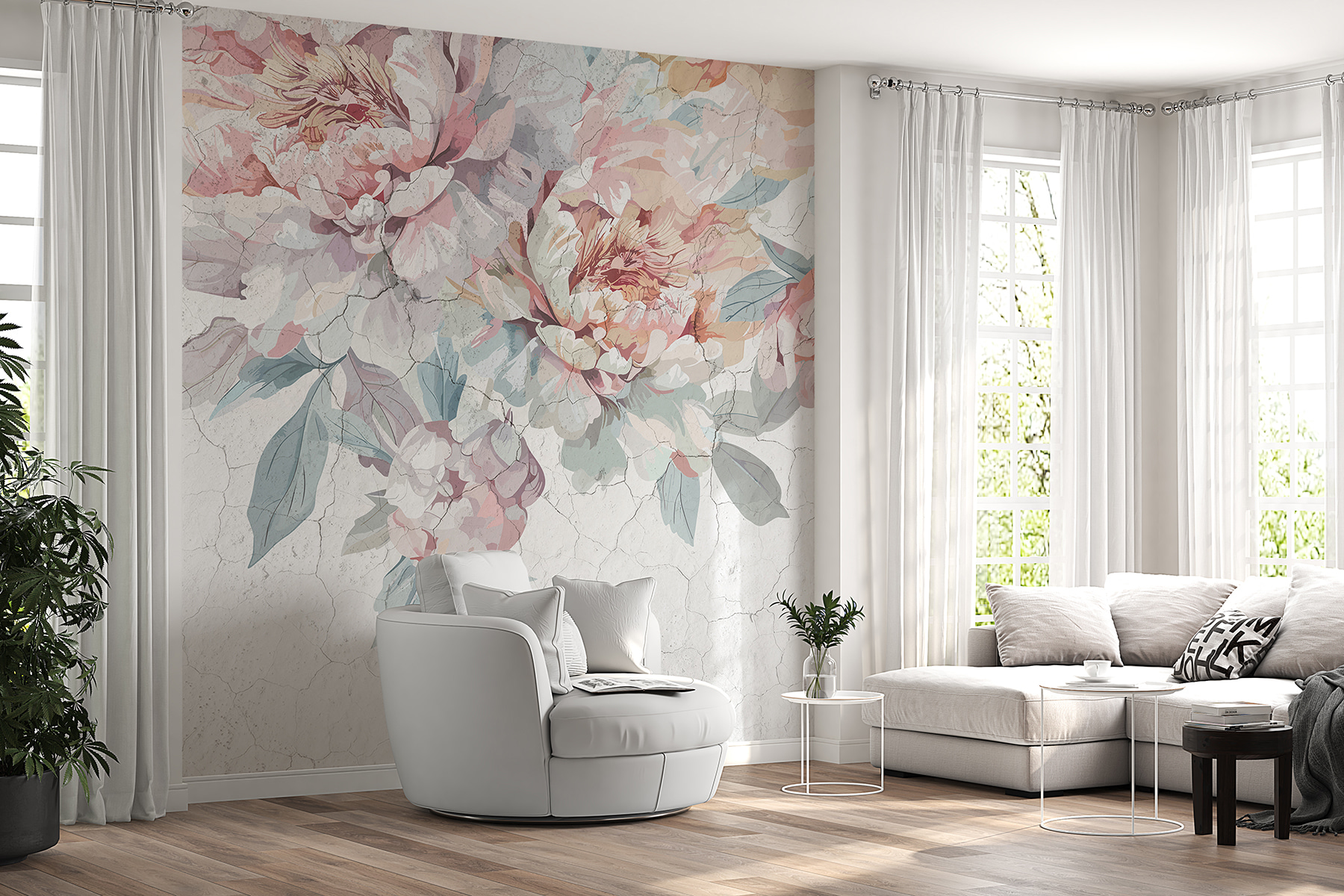 Przekształć każde pomieszczenie w spokojną ucieczkę dzięki fototapecie ściennej Pastelowe piwonie na delikatnie popękanym tle. Wyobraź to sobie: wchodzisz do swojego pokoju, a tam są delikatne kosmyki piwonii w delikatnych pastelowych kolorach tańczące po ścianie. To jak posiadanie ogrodu w domu, bez alergii na pyłki. Delikatne płatki dodają ciepła i uroku, sprawiając, że nawet najnudniejszy wtorek staje się wyjątkowy. Goście mogą po prostu zatrzymać się, wypić kawę i powiedzieć: “Wow, to jest piękne”. Poważnie, kto by tego nie chciał? Idealna do przytulnego kącika lub bajecznej ściany, ta fototapeta bez wysiłku urozmaici każdą atmosferę. Ponadto z pewnością wywoła radość – wyobraź sobie, jak zatapiasz się w tej zachęcającej atmosferze!