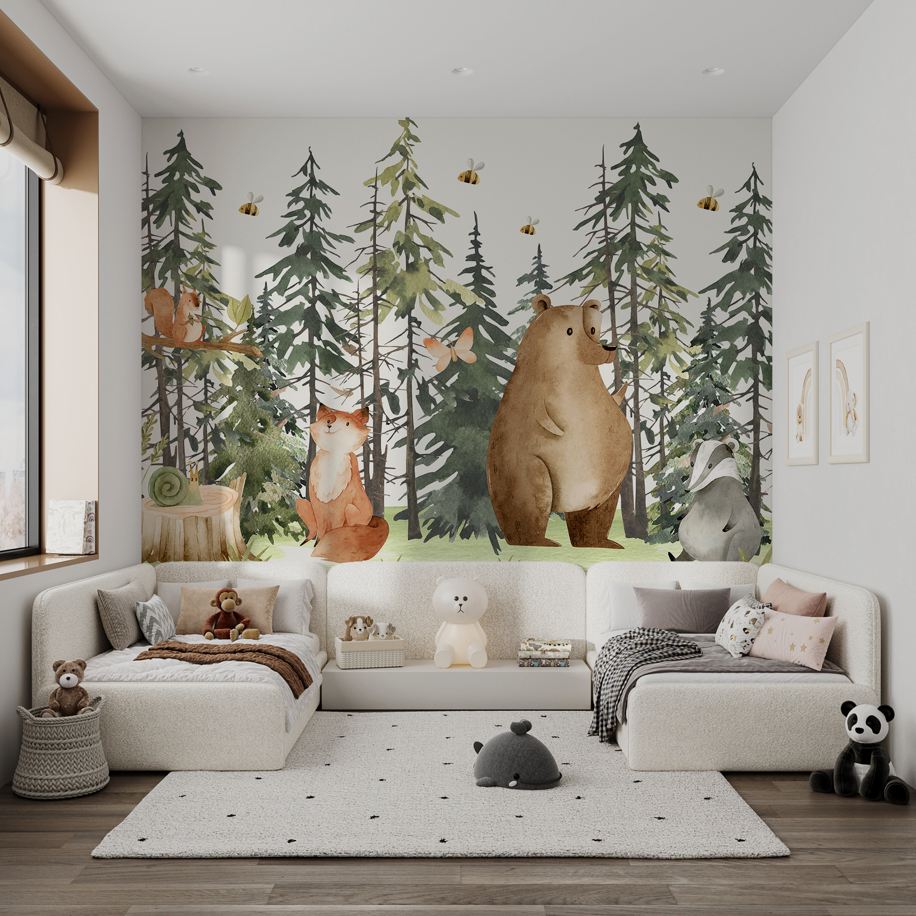 Przekształć dowolną przestrzeń w kapryśną krainę czarów dzięki tej uroczej fototapecie z uroczym ślimakiem wylegującym się na przytulnym pniu drzewa. Wyobraź to sobie: ciepłe światło słoneczne przenika przez wysokie sosny, a małe stworzenia, takie jak lisy i niedźwiedzie, dołączają do ciebie na herbatę – mówiąc metaforycznie! Delikatne kolory i urocze dzikie zwierzęta tworzą magiczną atmosferę, która może uspokoić nawet najbardziej zajęte umysły. Wyobraź sobie, że budzisz się w tej radosnej scenerii i od razu czujesz się otoczony przez naturę. To jak przeniesienie kawałka lasu prosto do domu, idealne do pokoju dziecięcego lub dowolnego miejsca, które potrzebuje odrobiny uroku. Co więcej, może zainspirować do cudownych marzeń na jawie!