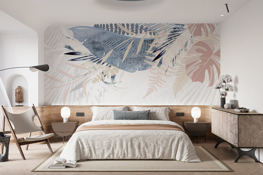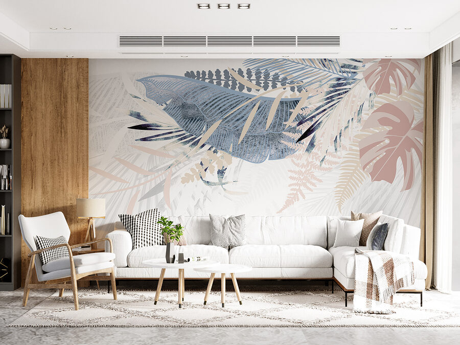 Sprawdź tę oszałamiającą fototapetę ścienną “Abstrakcyjny tropikalny wzór liści”! To jak powiew świeżego powietrza dla każdego pomieszczenia, natychmiast przekształcając przestrzeń w bujną, artystyczną przystań. Nakładające się na siebie liście palmowe i delikatne tropikalne rośliny, przedstawione w miękkich, chłodnych odcieniach, oferują idealne połączenie spokoju i wyrafinowania. Wyobraź sobie, że popijasz poranną kawę lub relaksujesz się z książką, otoczony tym spokojnym klimatem dżungli.
