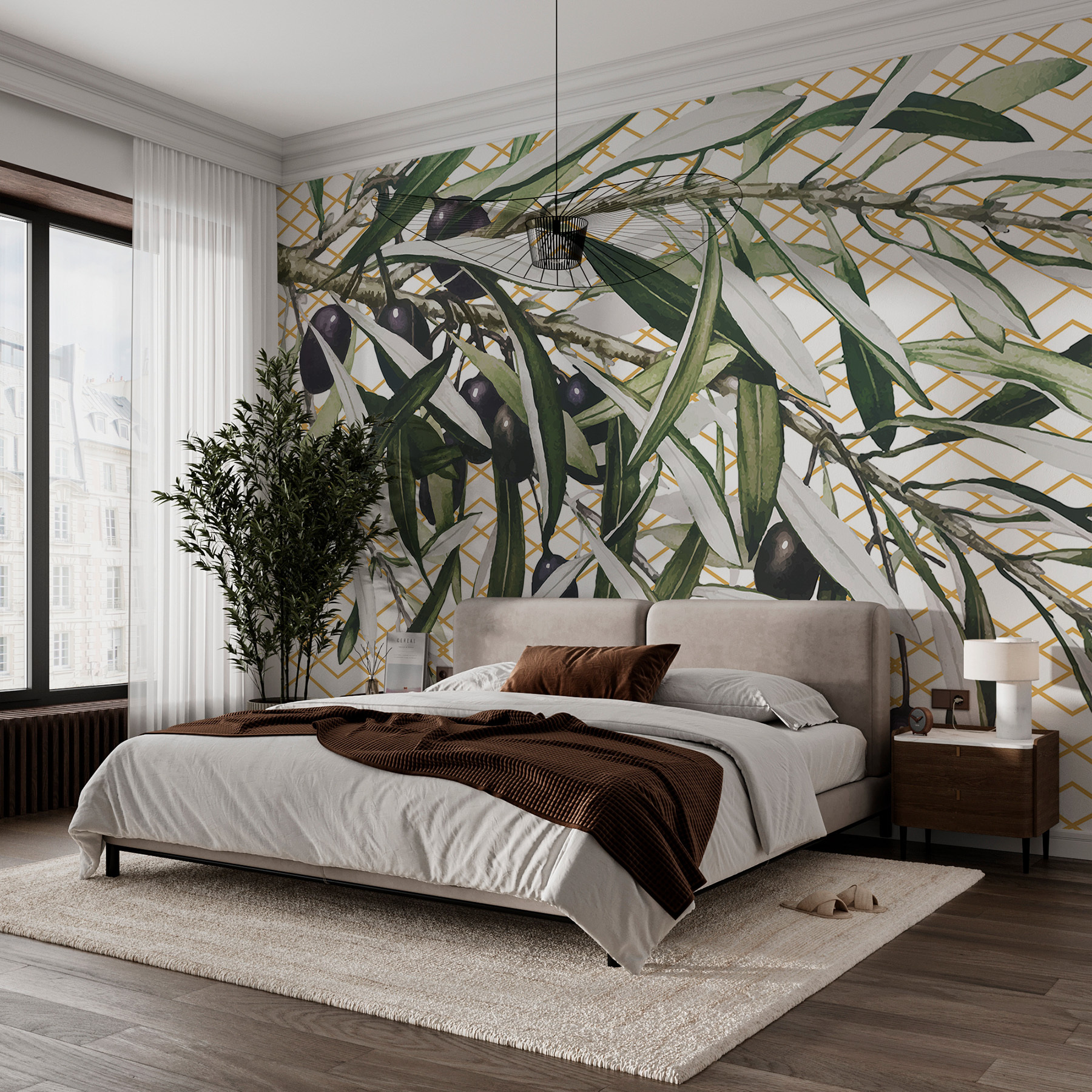 Och, ta fototapeta jest cudowna! Wyobraź sobie, że wypełniasz swoją przestrzeń spokojną atmosferą gaju oliwnego w swoim domu. Fototapeta “Gałązki oliwne na geometrycznym wzorze” bez wysiłku łączy naturę z nowoczesnym designem. Geometryczne tło jest subtelne, ale uderzające, nadając mu współczesny charakter. To tak, jakby mieć to, co najlepsze z obu światów – dotyk natury i elegancję sztuki nowoczesnej. Wyobraź sobie, że organizujesz przyjęcie lub po prostu relaksujesz się na kanapie z tym uspokajającym elementem – poczujesz się jak mini śródziemnomorska ucieczka! Niezależnie od tego, czy popijasz poranną kawę, czy odpoczywasz po męczącym dniu, ta fototapeta doda delikatnego, wyrafinowanego uroku do twojego sanktuarium. Szczerze mówiąc, trudno nie zakochać się w delikatnych liściach i eleganckich oliwkach. Idealna dla tych, którzy uwielbiają wystrój inspirowany naturą z odrobiną designerskiego szyku.