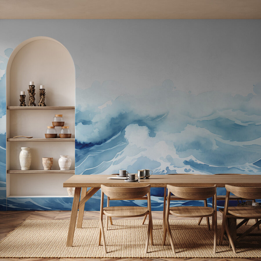 Odmień swoją przestrzeń dzięki pięknu tej akwarelowej fototapety przedstawiającej fale i chmury. Wyobraź sobie, że wkraczasz w spokojną atmosferę, w której zgiełk znika, pozostawiając tylko ciebie i delikatny rytm oceanu. Delikatne błękity i biele przywołują spokojną atmosferę, idealną do stworzenia przytulnego kącika do czytania lub po prostu śnienia na jawie, popijając ulubiony napój. To jak przeniesienie kawałka morza prosto do swojego domu – nie są wymagane piaszczyste palce! Idealny do salonu, sypialni, a nawet kreatywnego kącika. Przygotuj się na komplementy i być może odrobinę zazdrości ze strony znajomych!