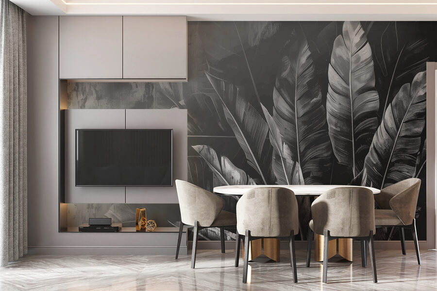 Wyobraź sobie, że wchodzisz do pokoju i od razu czujesz się, jakbyś wkroczył do stylowej dżungli – jakie to fajne? Ta fototapeta ścienna w00971 łączy w sobie tropikalne wibracje z elegancką, monochromatyczną paletą. Te rozłożyste liście palmowe wydają się niemal kołysać na delikatnej, wyimaginowanej bryzie. Idealny dla każdego, kto marzy o odrobinie raju we własnym domu. Umieść go w salonie, aby dodać artystycznego akcentu lub w sypialni, aby uzyskać spokojny akcent. Bonus: tekstura drewna łączy się z naturą, dodając odrobinę przytulnego uroku domku. Każde spojrzenie na tę fototapetę – czy to przy porannej kawie, czy podczas wylegiwania się z książką – płata figle zmysłom i pobudza wewnętrznego poszukiwacza przygód. Wyobraź sobie, jakie rozmowy może wywołać ta fototapeta! Niezależnie od tego, czy są to znajomi podziwiający twój świetny gust, czy po prostu czujesz się jak w oazie, ta fototapeta zmienia zasady gry. Dodaj ją do swojej przestrzeni, uwolnij dzikość i wygrzewaj się w objęciach natury… nie martwiąc się o robaki!