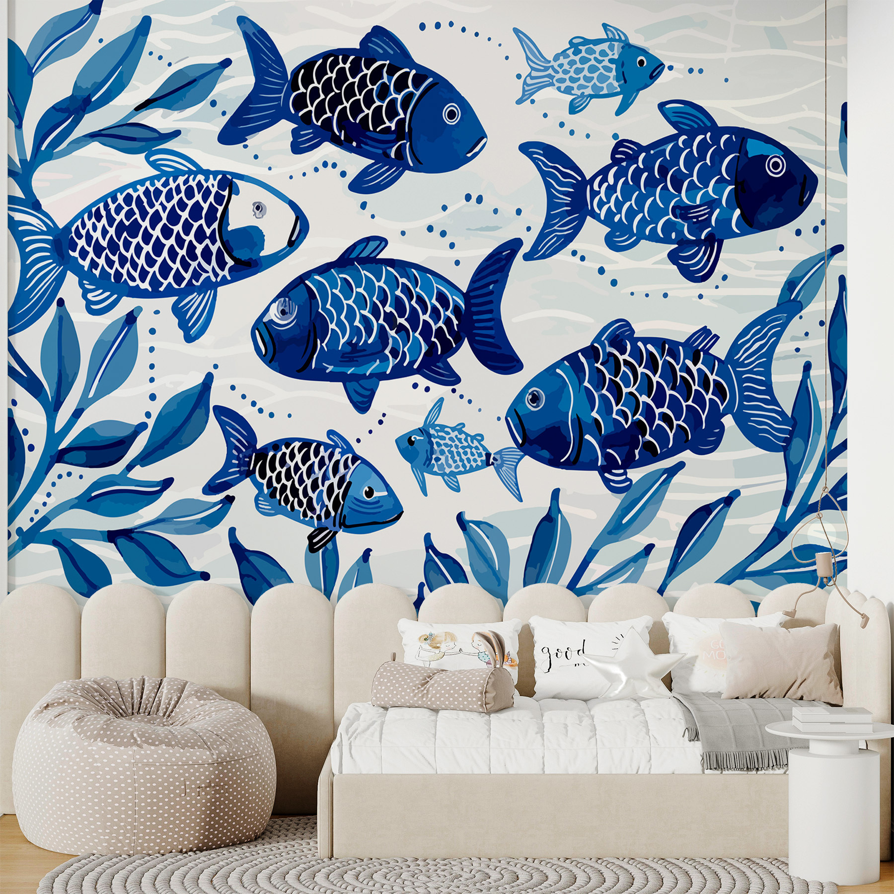 Wyobraź sobie, że twoja ściana zamienia się w podwodną krainę czarów z wesołą ławicą niebieskich ryb pływających bez wysiłku. Ta fototapeta jest jak odrobina magii oceanu – idealna dla tych, którzy marzą o nadmorskich ucieczkach. Akwarelowe wibracje sprawiają, że czujesz się prawie tak, jakbyś wylegiwał się z palcami u stóp na piasku, a delikatna morska bryza szeptała sekrety. To nie tylko dekoracja; to mała ucieczka za każdym razem, gdy spojrzysz w jej stronę. Idealny do przytulnego salonu lub przewiewnej sypialni w stylu plażowym, to jak posiadanie własnego akwarium bez harmonogramu karmienia!
