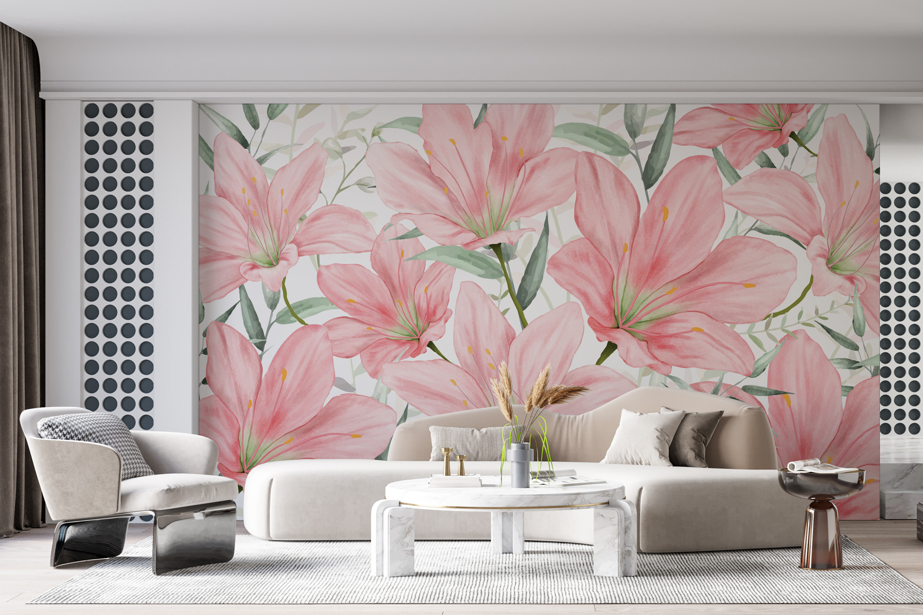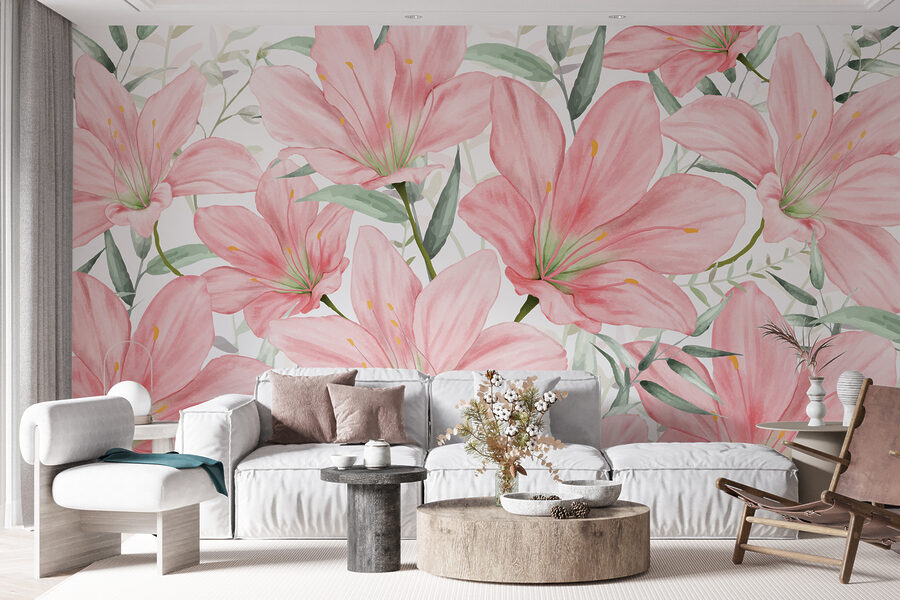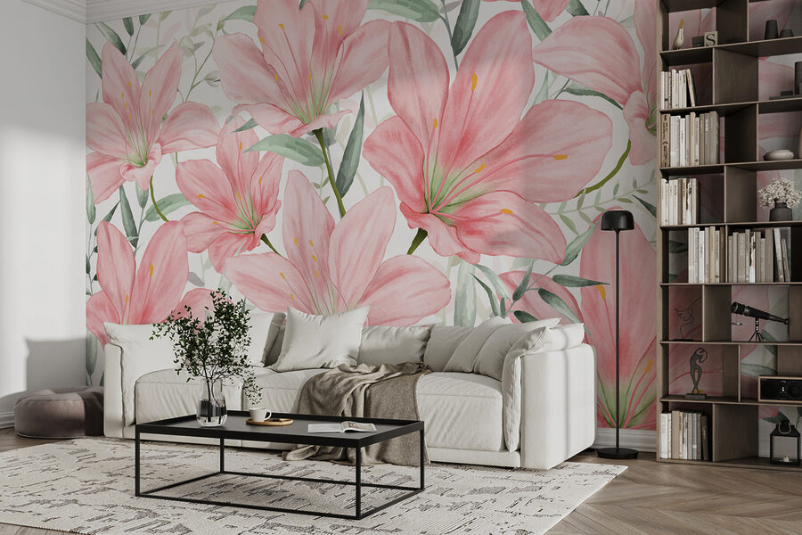 Wyobraź sobie, że wchodzisz do pokoju, w którym każda ściana szepcze delikatne powitanie z kwitnącymi liliami, delikatnie różowymi i elegancko ułożonymi. Ta fototapeta – nazwijmy ją kradnącą scenę – wnosi do wnętrza odrobinę natury z nutą bajki. To jak przyjęcie w ogrodzie bez martwienia się o pogodę! Idealny dla tych, którzy kochają mieszankę sztuki i natury, czuje się jak osobisty uścisk od samej Matki Natury. Goście mogą nawet zapytać, skąd masz to oszałamiające “dzieło sztuki” – a ty możesz po prostu uśmiechnąć się, pokiwać głową i pozwolić liliom mówić.