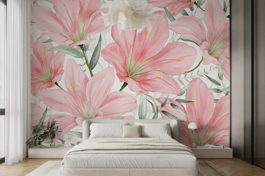 Wyobraź sobie, że wchodzisz do pokoju, w którym każda ściana szepcze delikatne powitanie z kwitnącymi liliami, delikatnie różowymi i elegancko ułożonymi. Ta fototapeta – nazwijmy ją kradnącą scenę – wnosi do wnętrza odrobinę natury z nutą bajki. To jak przyjęcie w ogrodzie bez martwienia się o pogodę! Idealny dla tych, którzy kochają mieszankę sztuki i natury, czuje się jak osobisty uścisk od samej Matki Natury. Goście mogą nawet zapytać, skąd masz to oszałamiające “dzieło sztuki” – a ty możesz po prostu uśmiechnąć się, pokiwać głową i pozwolić liliom mówić.