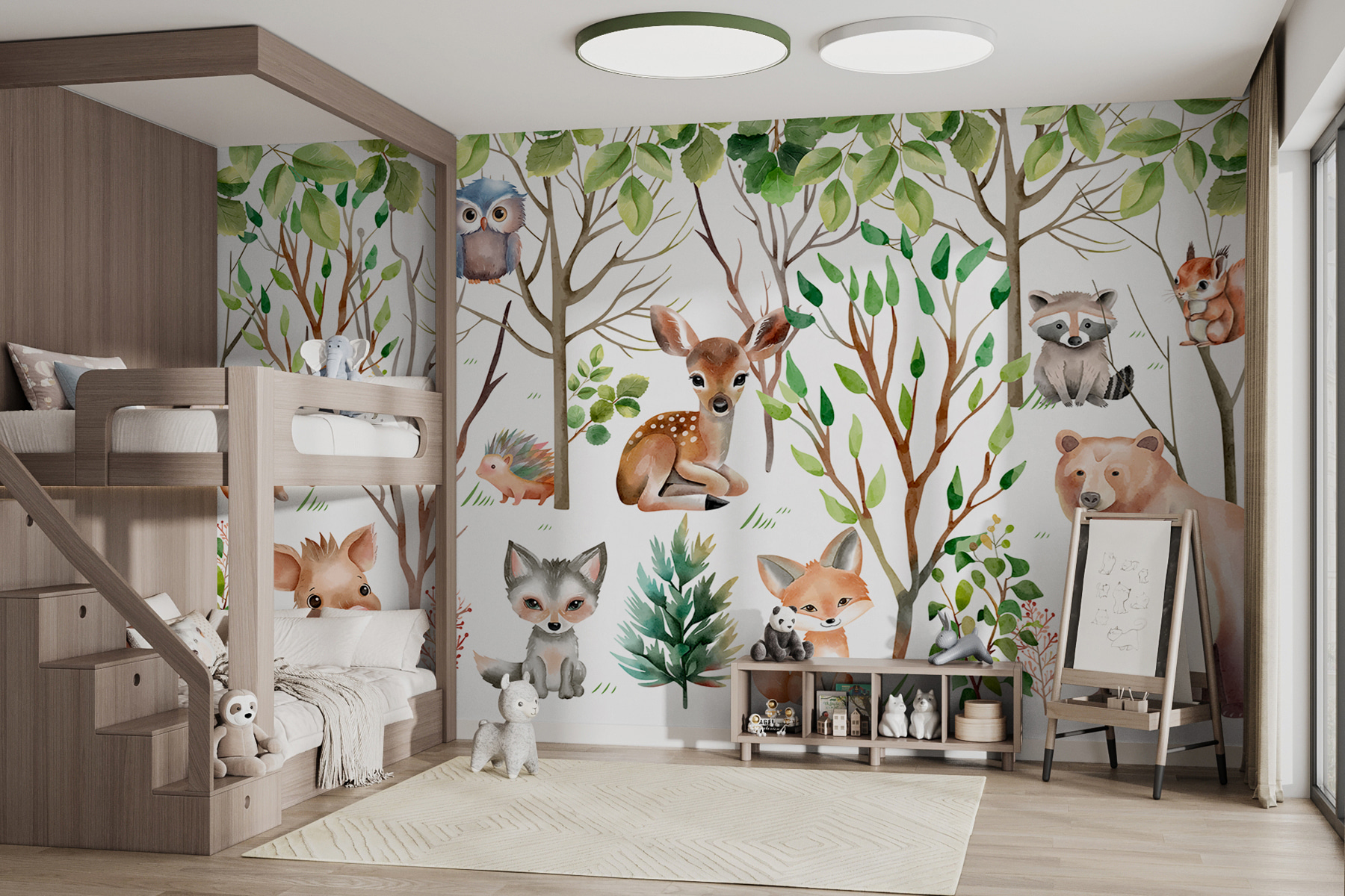 Ach, urok dzikiej przyrody! Wyobraź sobie, że budzisz się i znajdujesz się w środku bajkowego lasu. Tak właśnie wygląda fototapeta “Grupa zwierząt w lesie”. Urocze leśne stworzenia wyglądają figlarnie – króliki, sowy, a nawet ciekawski niedźwiedź – każde z nich dodaje odrobinę kaprysu. To jak przytulny domek w domu, bez sprayu na owady! Idealny do pokoju dziecięcego lub salonu, który szuka odrobiny ciepła i cudowności. Znajomi mogą nawet zapytać, czy ukryłeś gdzieś sekretny las. Kto by pomyślał, że natura może być tak przyjazna?