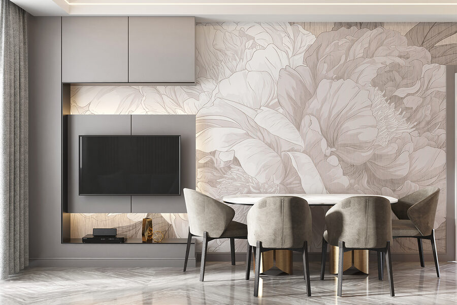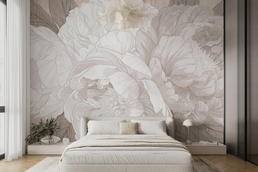 Wyobraź to sobie – siedzisz w swoim salonie z filiżanką herbaty w ręku, a ścianę zdobi efektowna fototapeta z piwoniami. To tak, jakby kwiaty same szeptały elegancję do pokoju. Monochromatyczny szkic nadaje mu wyrafinowany klimat, prawie tak, jakbyś był w eleganckiej galerii sztuki, a może nawet w wietrznym, zaczarowanym ogrodzie. Idealny dla każdego, kto kocha odrobinę uroku natury bez krzyczenia. Dodatkowo, wprowadza spokojny, pokojowy nastrój – dodając odrobinę spokoju do tych zabieganych dni. Idealne, prawda?