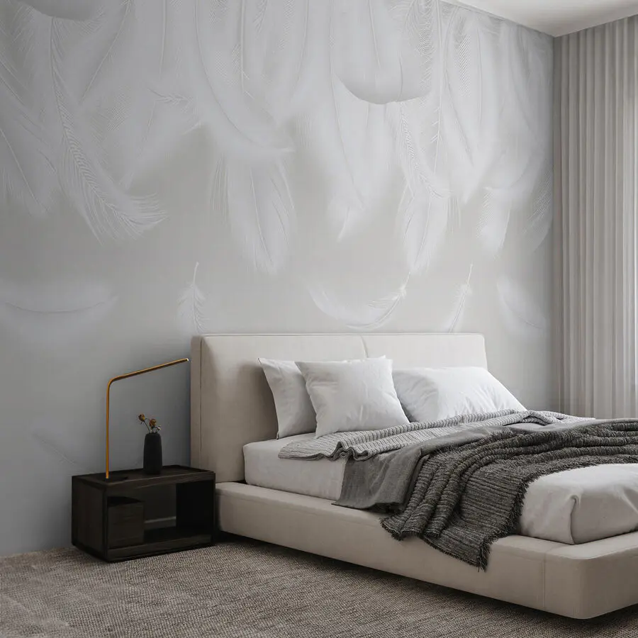 Fototapeta ścienna “Spadające białe pióra” jest jak delikatna bryza w twojej przestrzeni życiowej. Wyobraź sobie wylegiwanie się w leniwy niedzielny poranek, popijając kawę, gdy te delikatne pióra spływają po ścianie. To jak delikatne, zwiewne przytulenie pokoju. Ta fototapeta dodaje szeptu elegancji, zamieniając zwykłą ścianę w artystyczną ucieczkę. Idealna dla tych, którzy lubią unosić się w chmurach. I hej, może nawet zainspirować kilka bardziej marzycielskich myśli lub kapryśnych rozmów. Bo któż nie potrzebuje od czasu do czasu trochę pomarzyć?