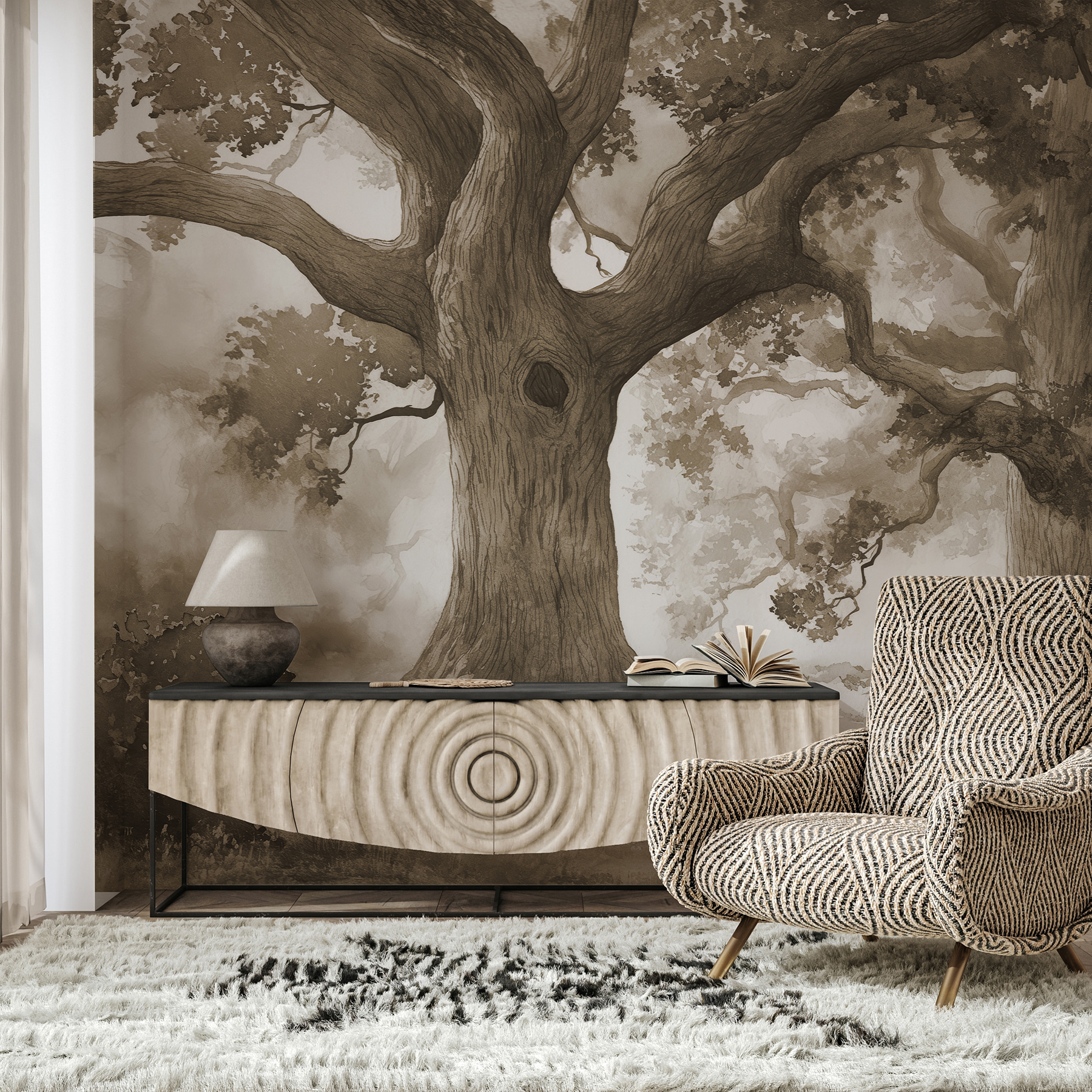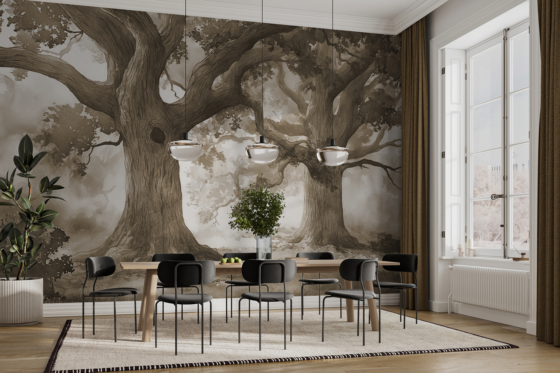 Wkrocz do kapryśnego świata dzięki tej fototapecie przedstawiającej wspaniałą grupę drzew, wraz z przytulną dziurą w jednym z pni – idealną do marzeń o leśnych stworzeniach odpoczywających. Ten wzór przenosi spokojną magię natury prosto do twojego domu, pozwalając ścianom szeptać opowieści o starożytnych lasach i cichych przygodach. Wyobraź sobie, że zwijasz się w kłębek w deszczowy dzień, z ciepłym napojem w dłoni, a drzewa stoją na straży, tworząc pocieszające tło. To tak, jakby mieć spokojny kawałek na świeżym powietrzu, bez błota. Idealny do każdego pomieszczenia, które potrzebuje odrobiny spokoju.